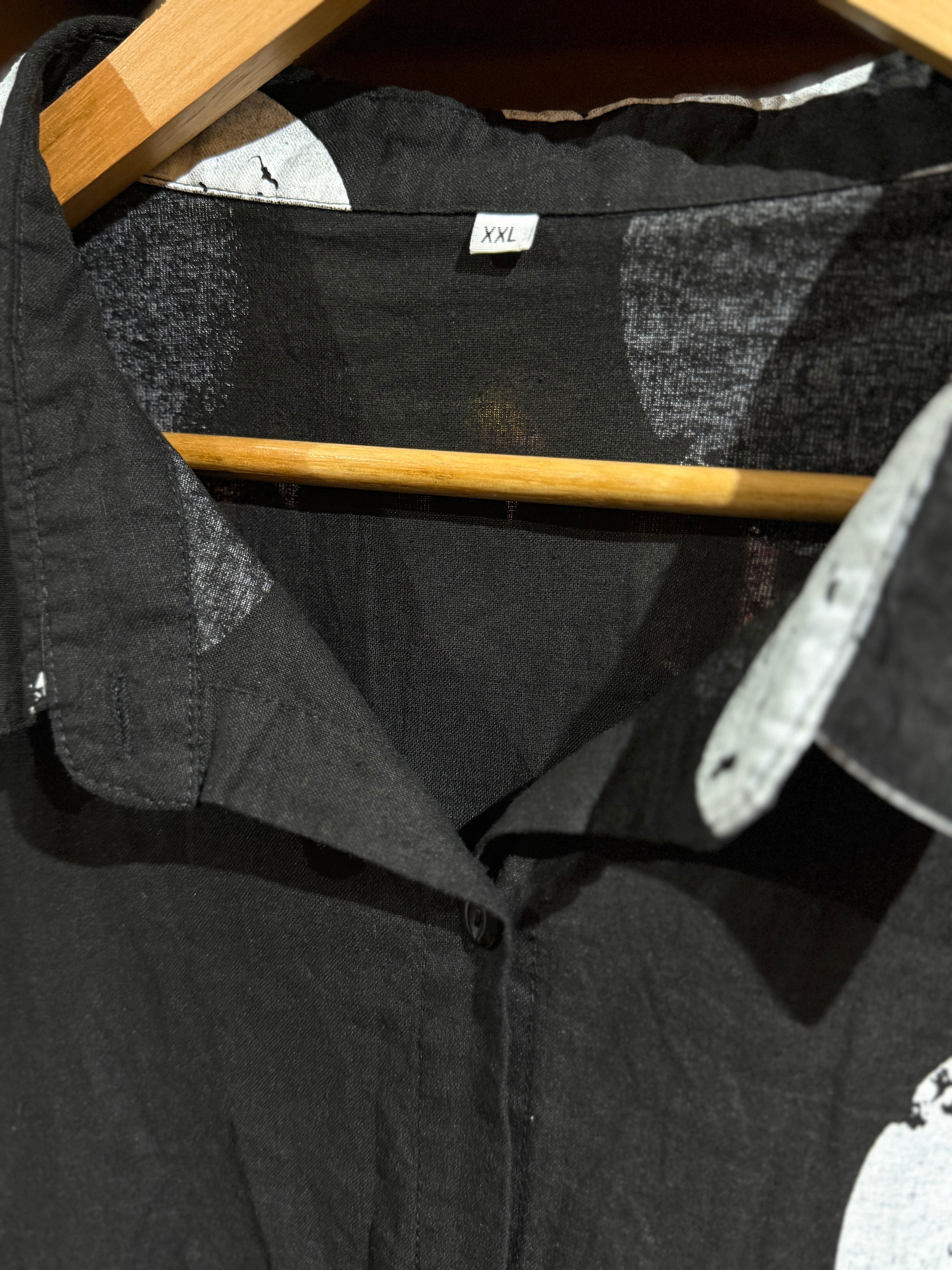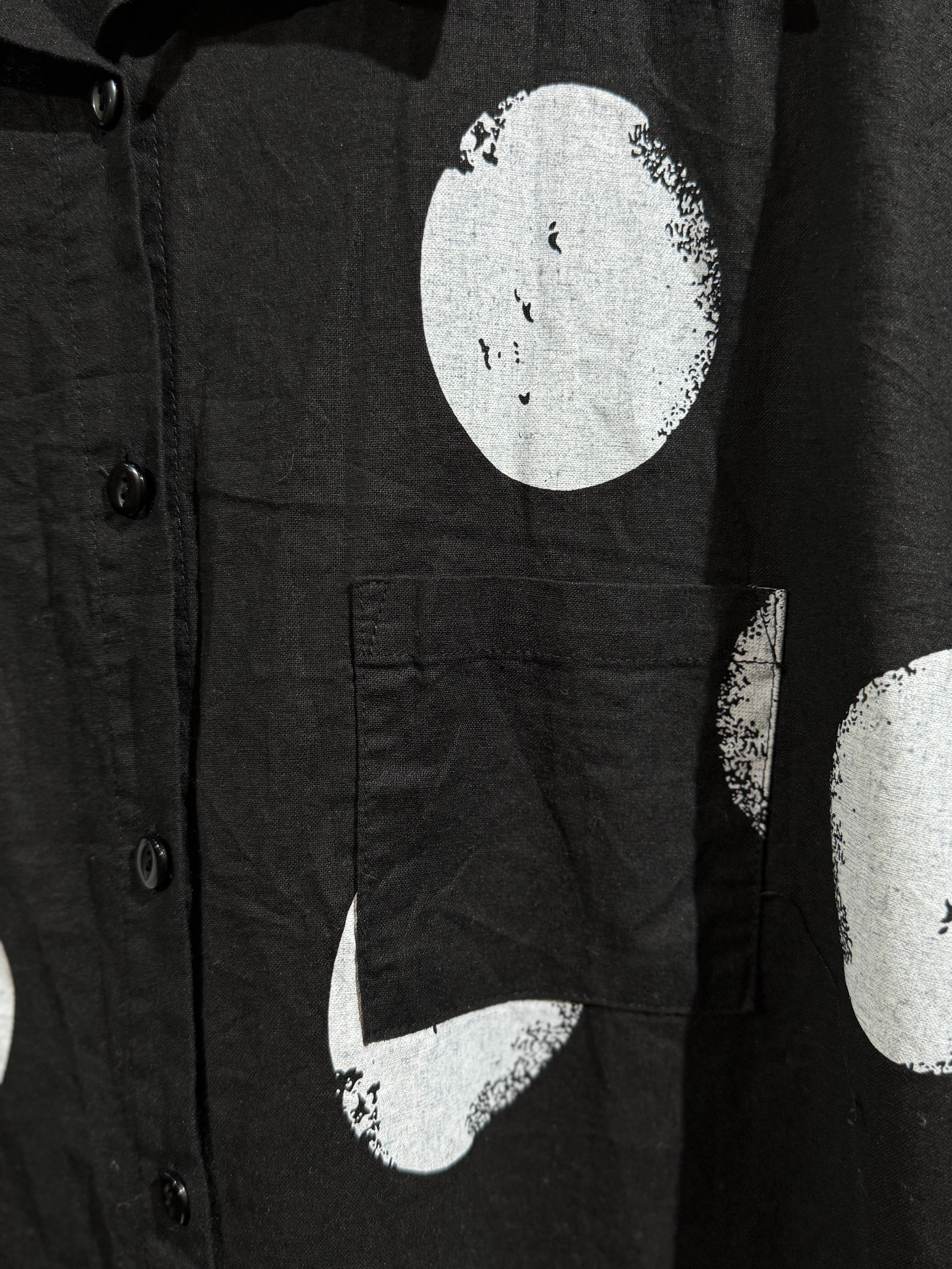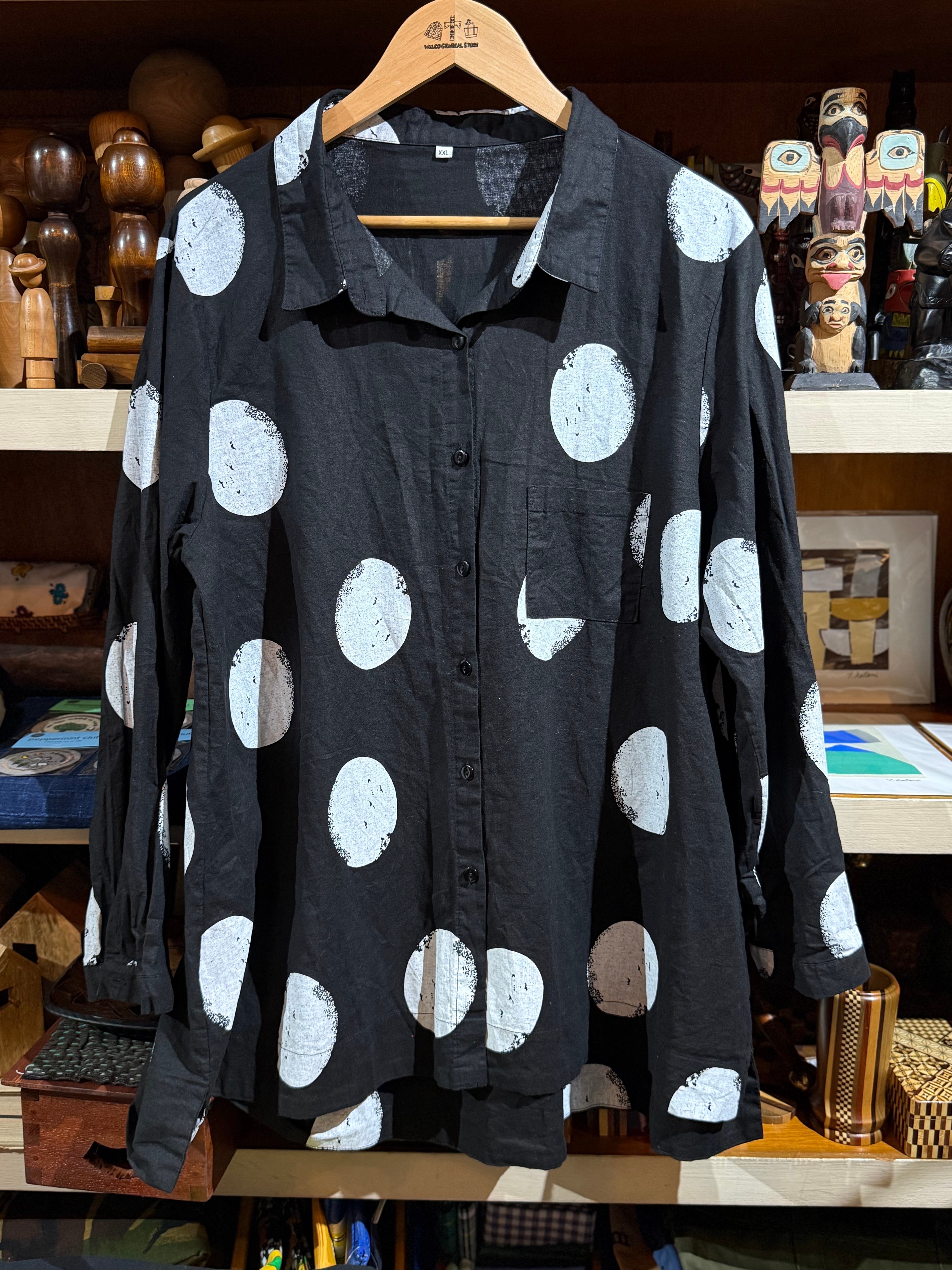 かすれたポルカドットのプリントが映える羽織のシャツです。