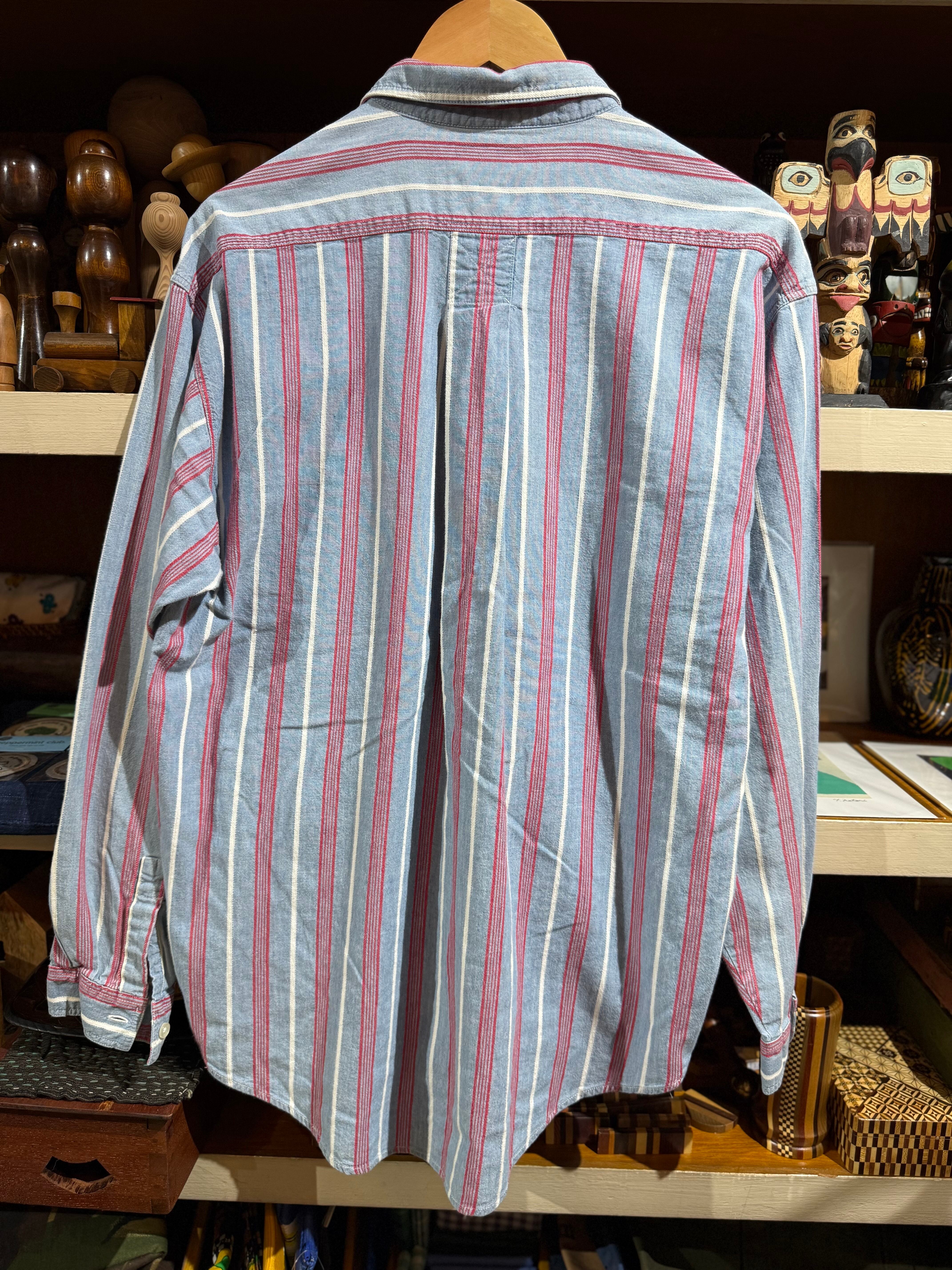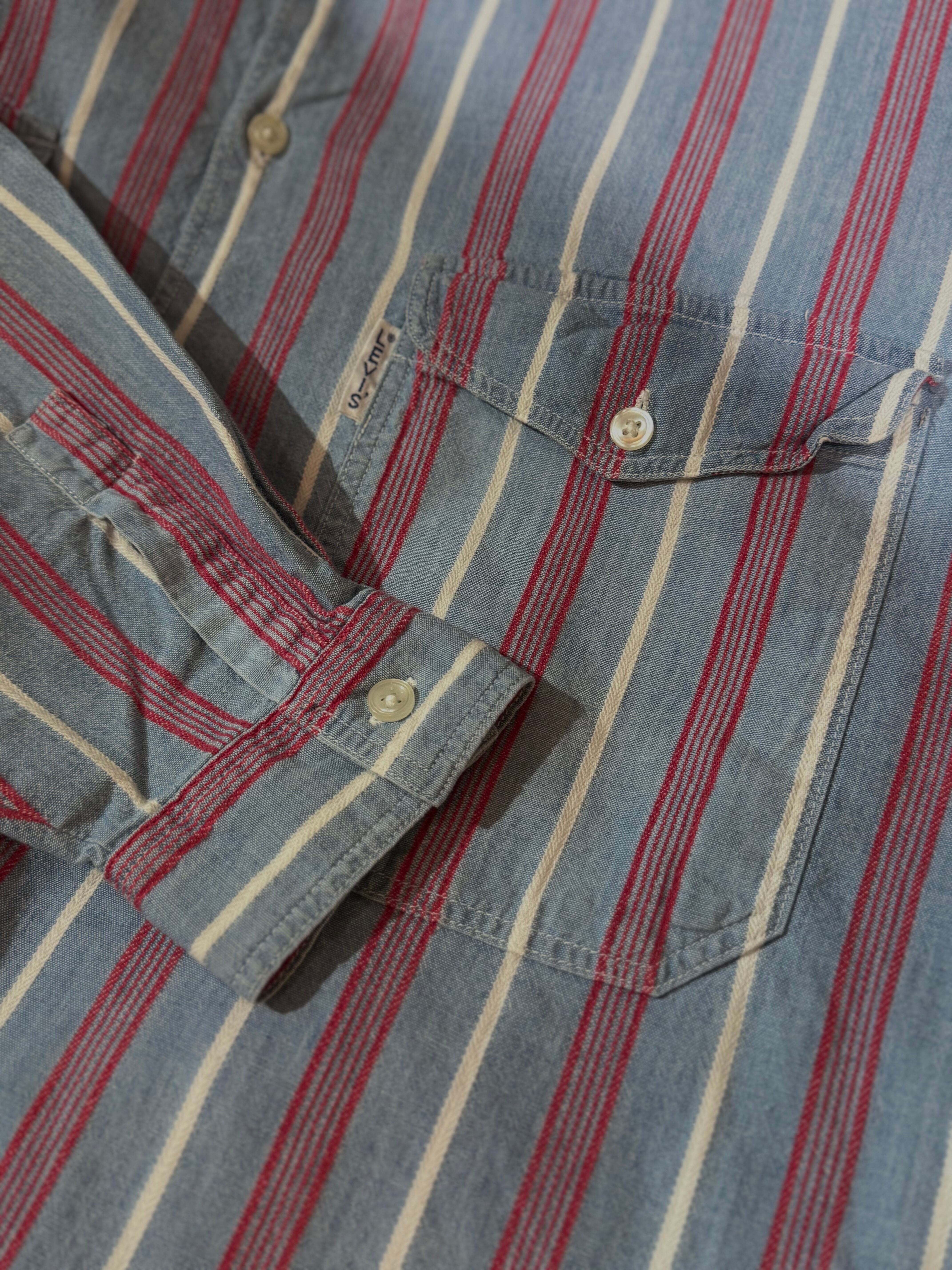<LEVI'S>で80年代に展開されていたDIAMOND LABELのストライプシャツ。シャンブレーの淡いブルー地に、2トーンのストライプが映えます。