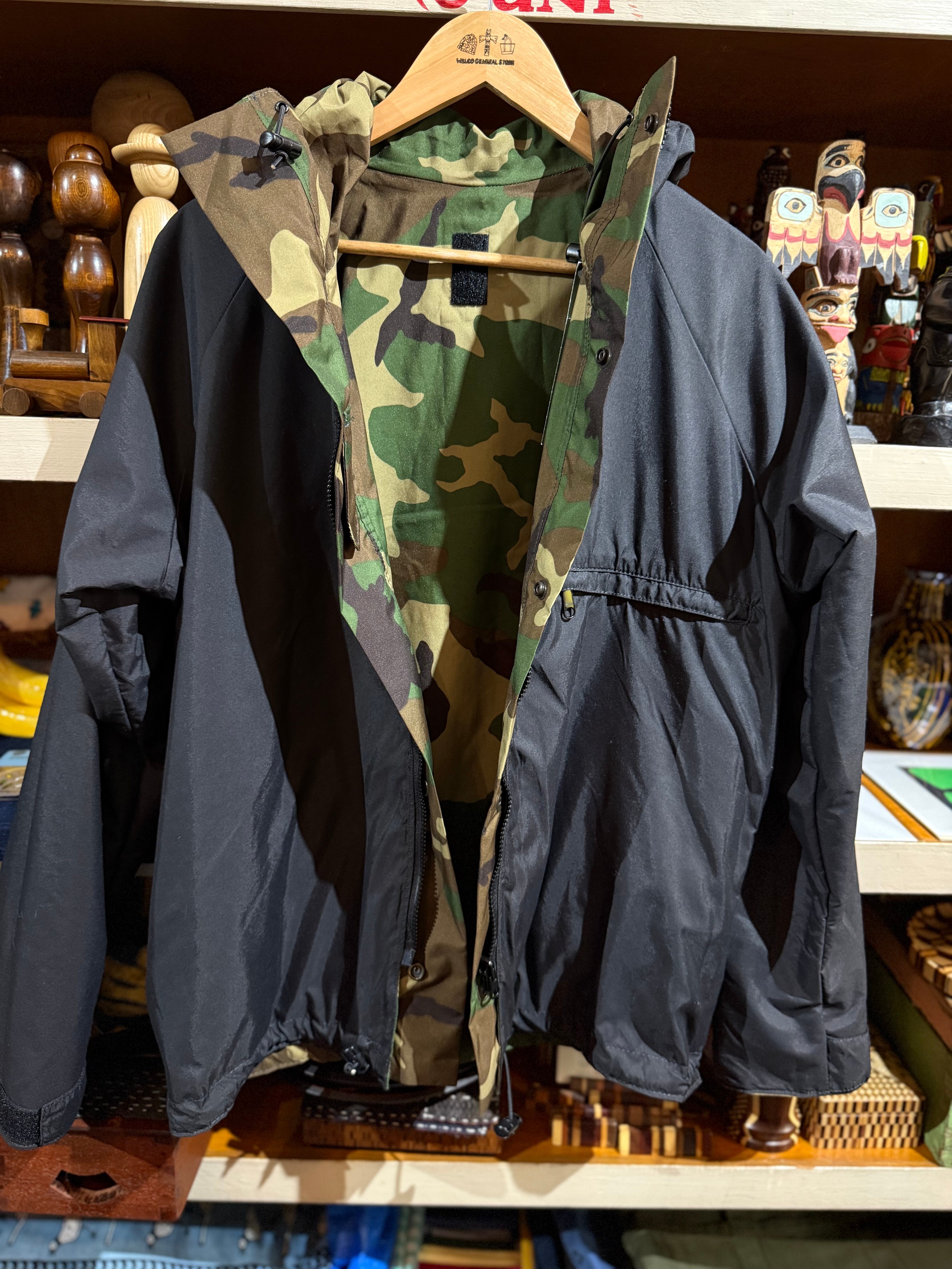ゴアテックスや米軍サンプル云々を抜きにしても、ブラックとカモフラのリバーシブルのナイロンジャケットというので面白いのではないかと。