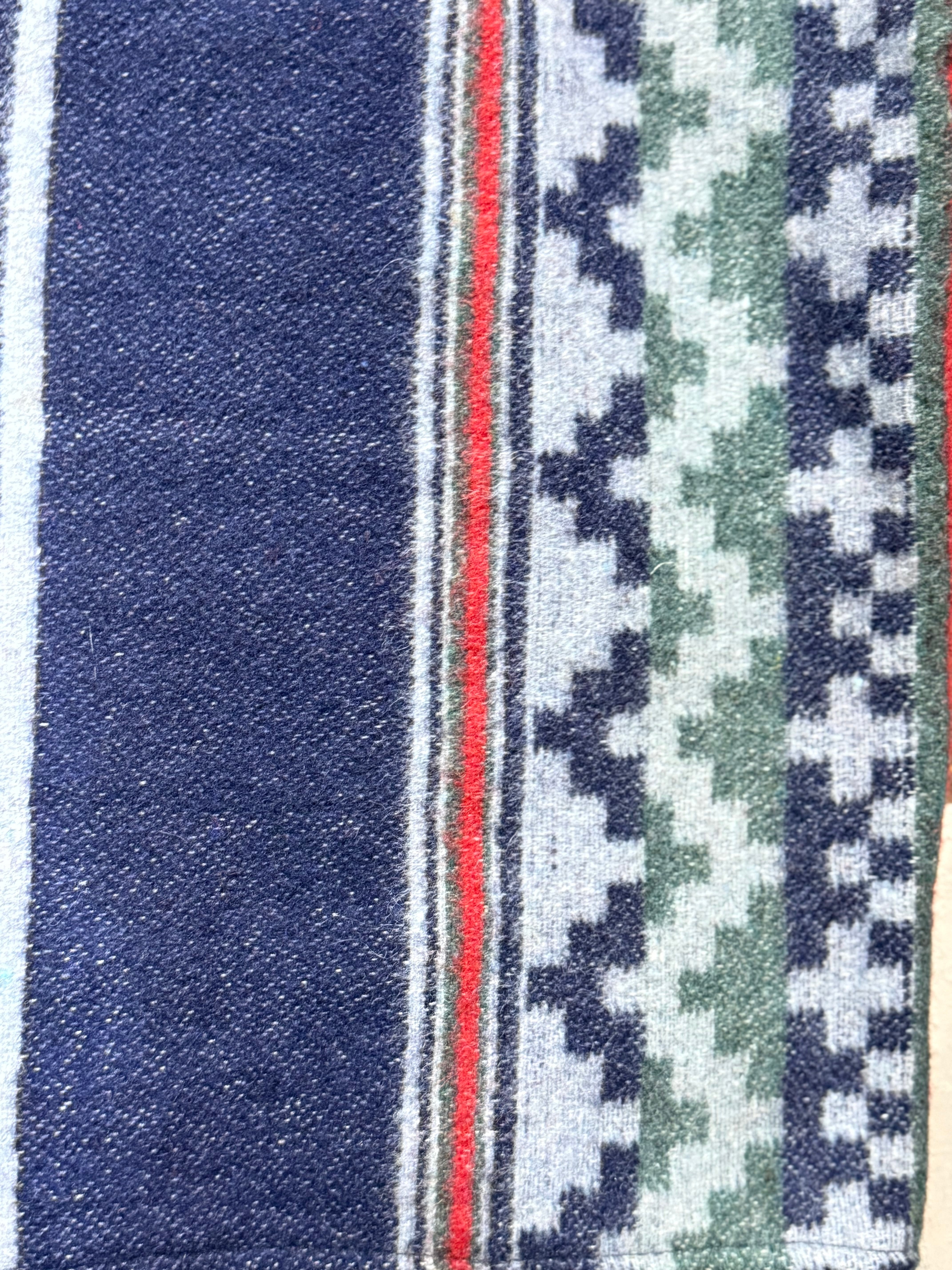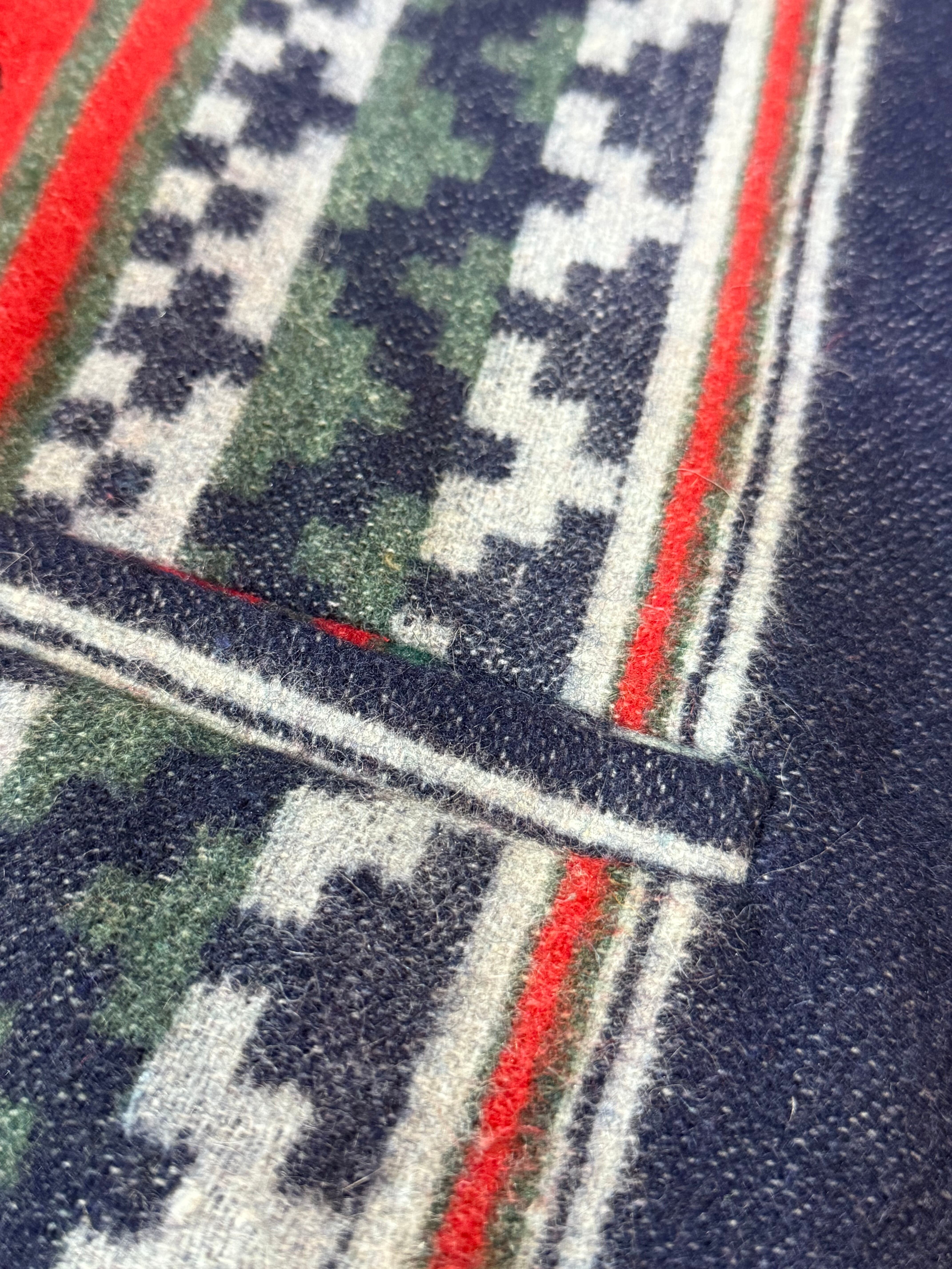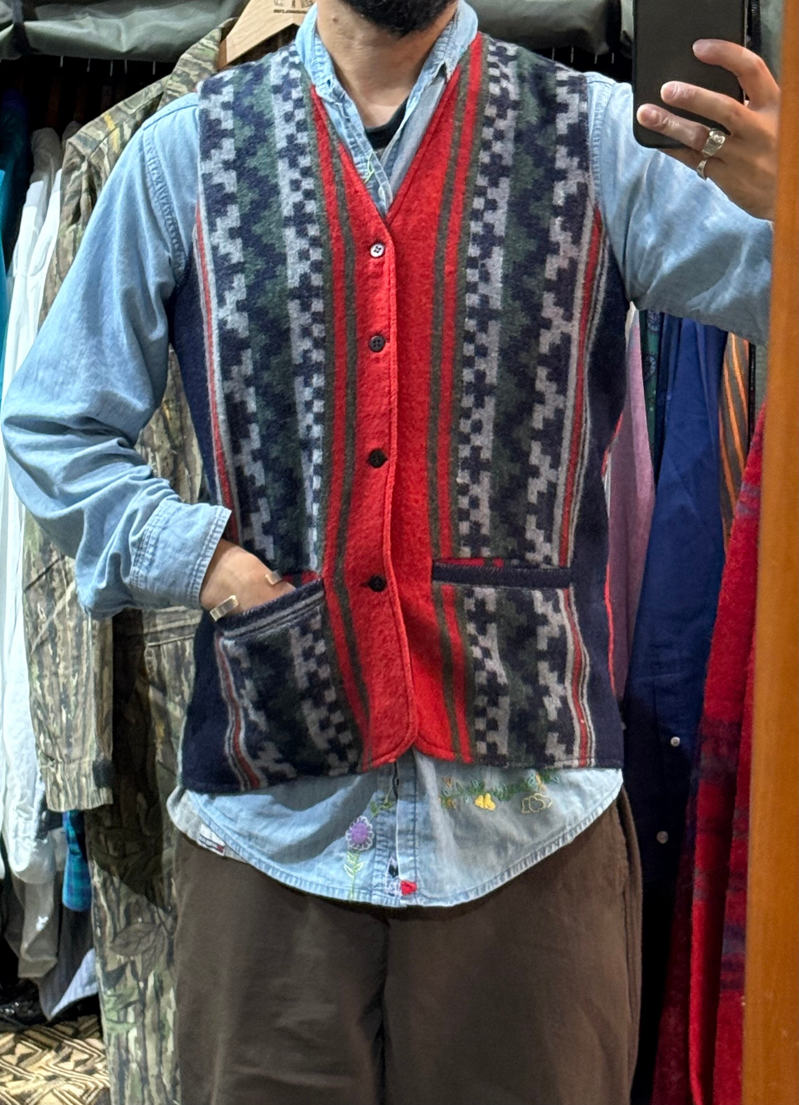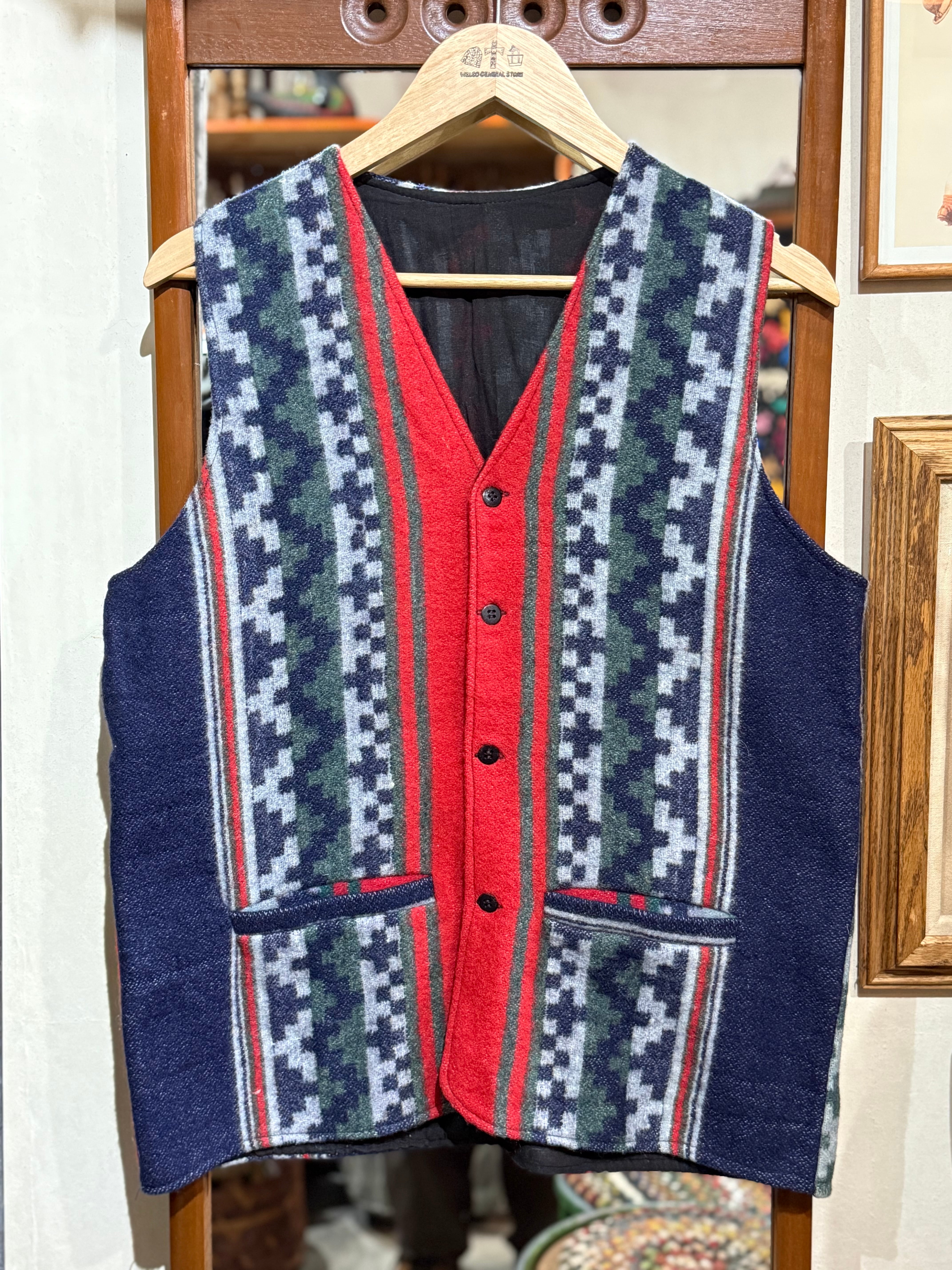 ブランドタグや素材表記など一切無い為、詳細不明ですが、アメリカ?ヨーロッパ?なフォークロア調な柄が程良いアクセントに。
