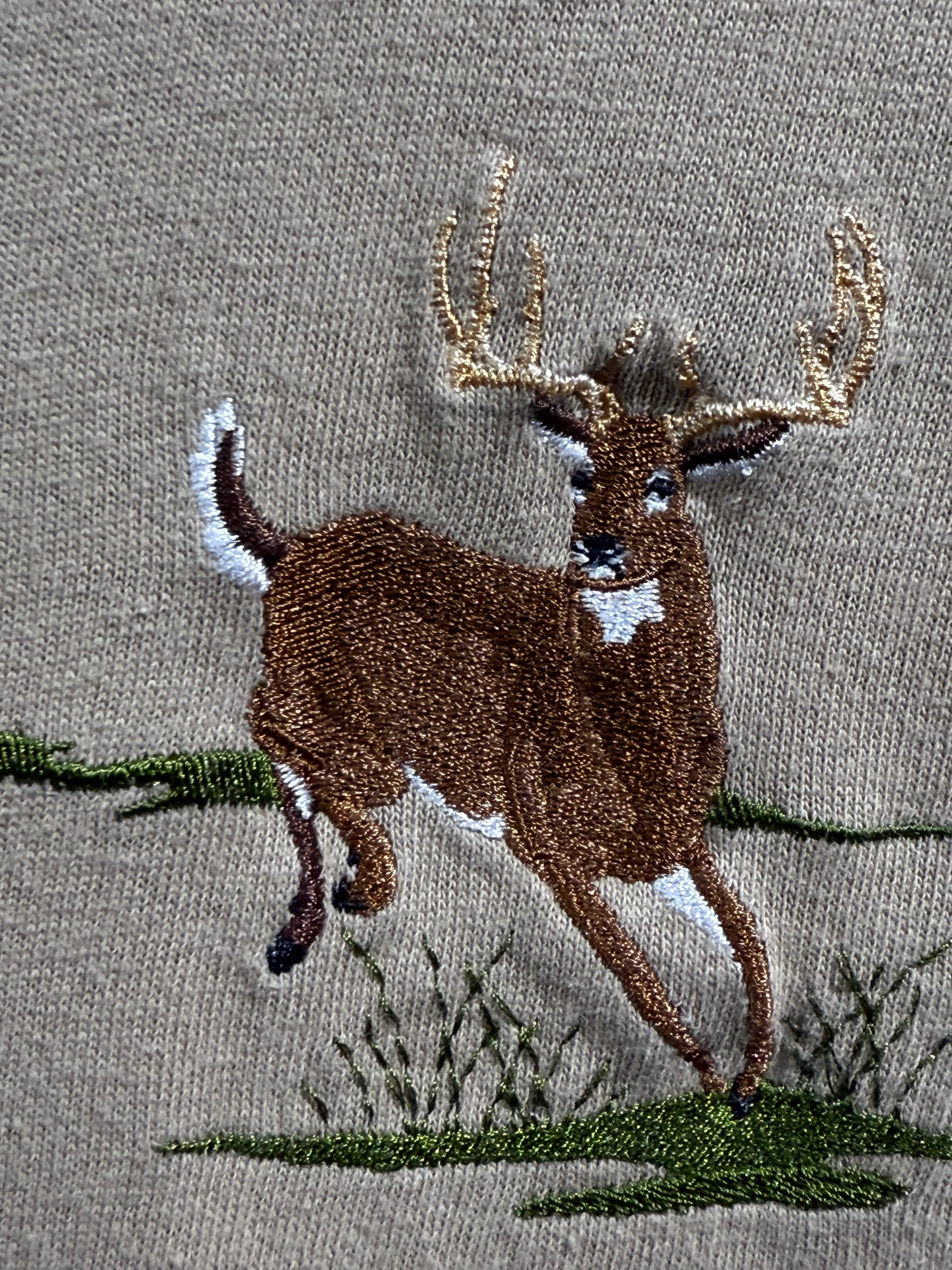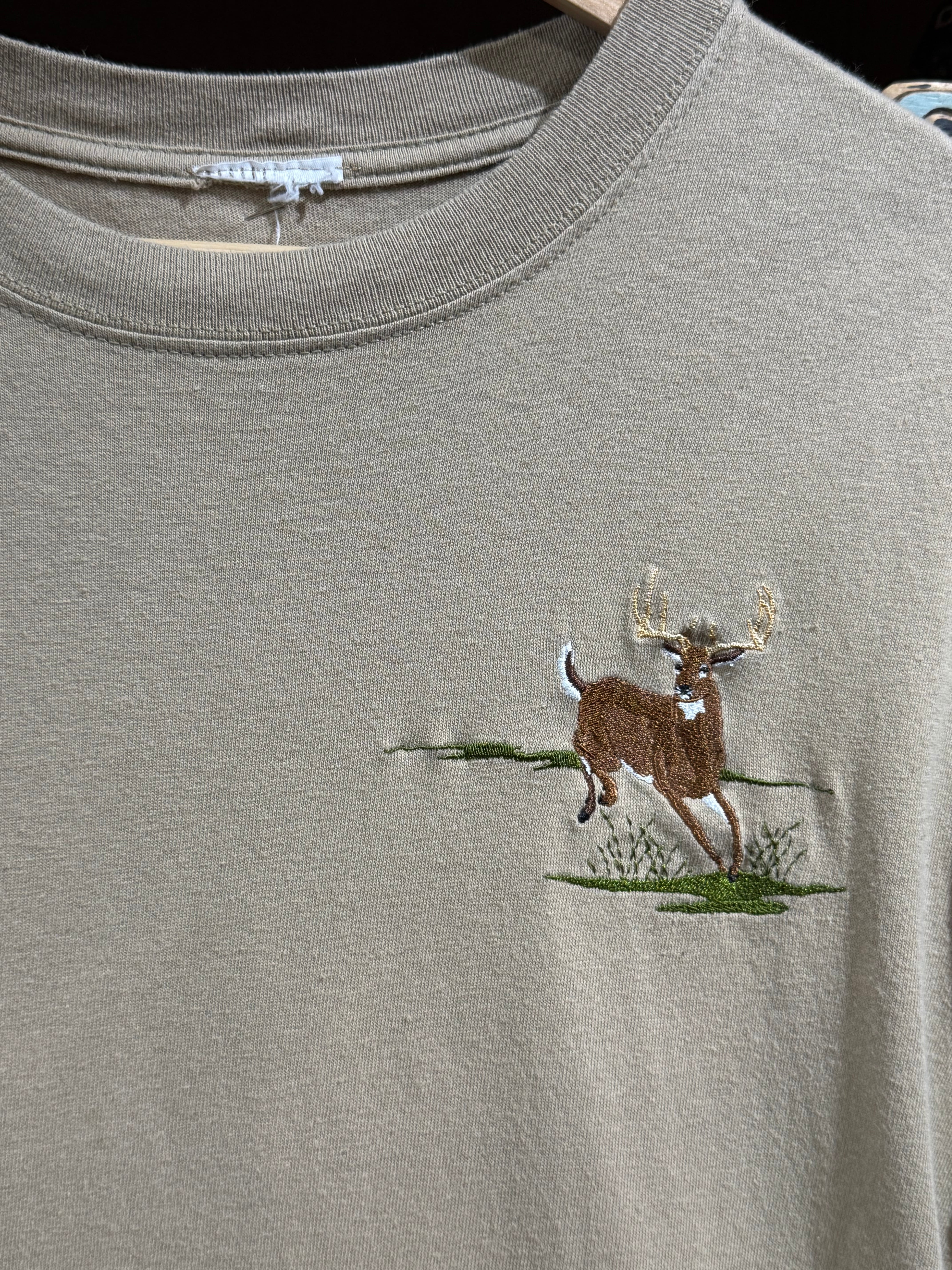 ベージュ地に、鹿が刺繍されたOLD Tシャツ