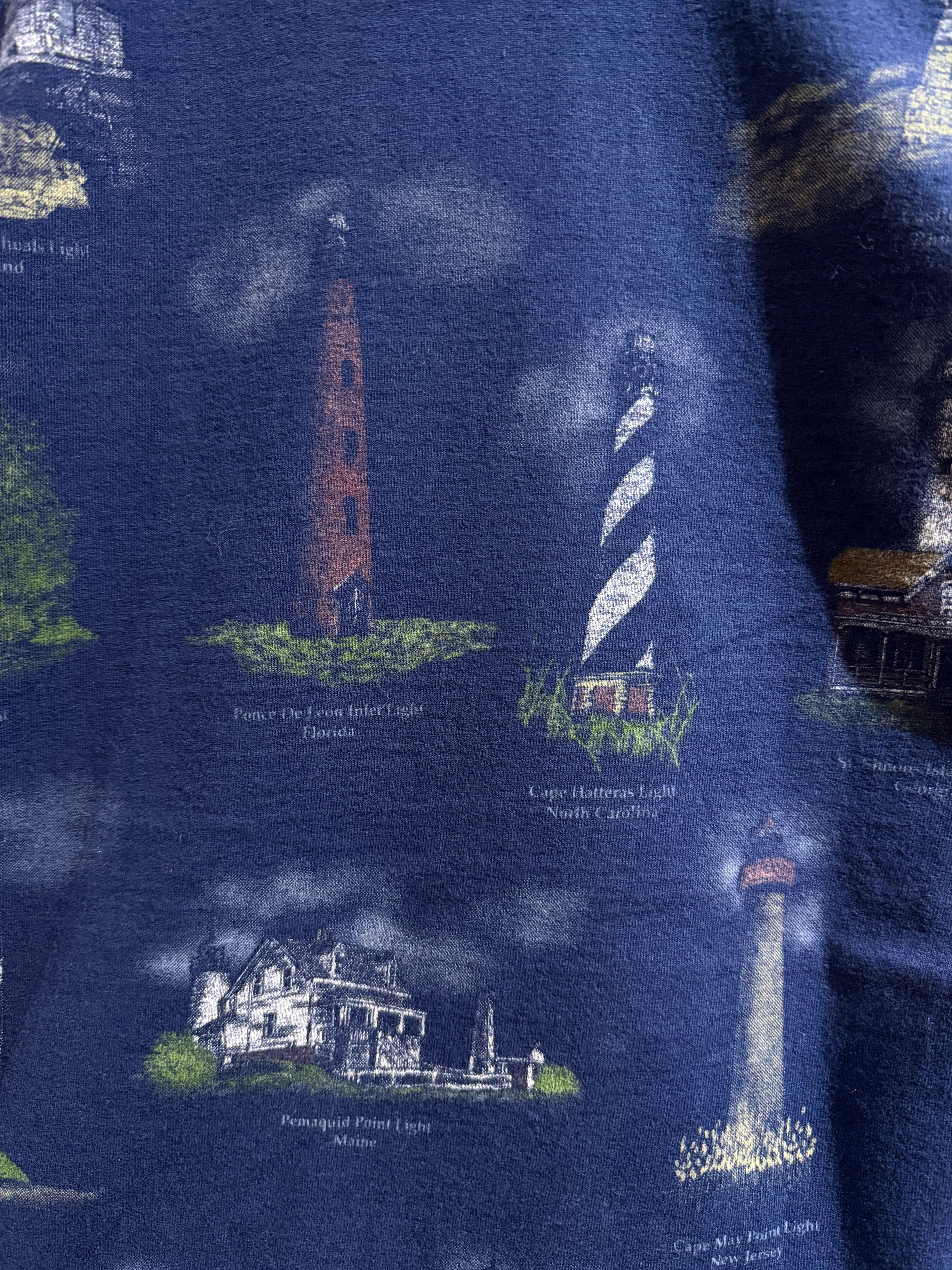 灯台が前面、背面、袖まで全面にプリントされたOLD Tシャツ