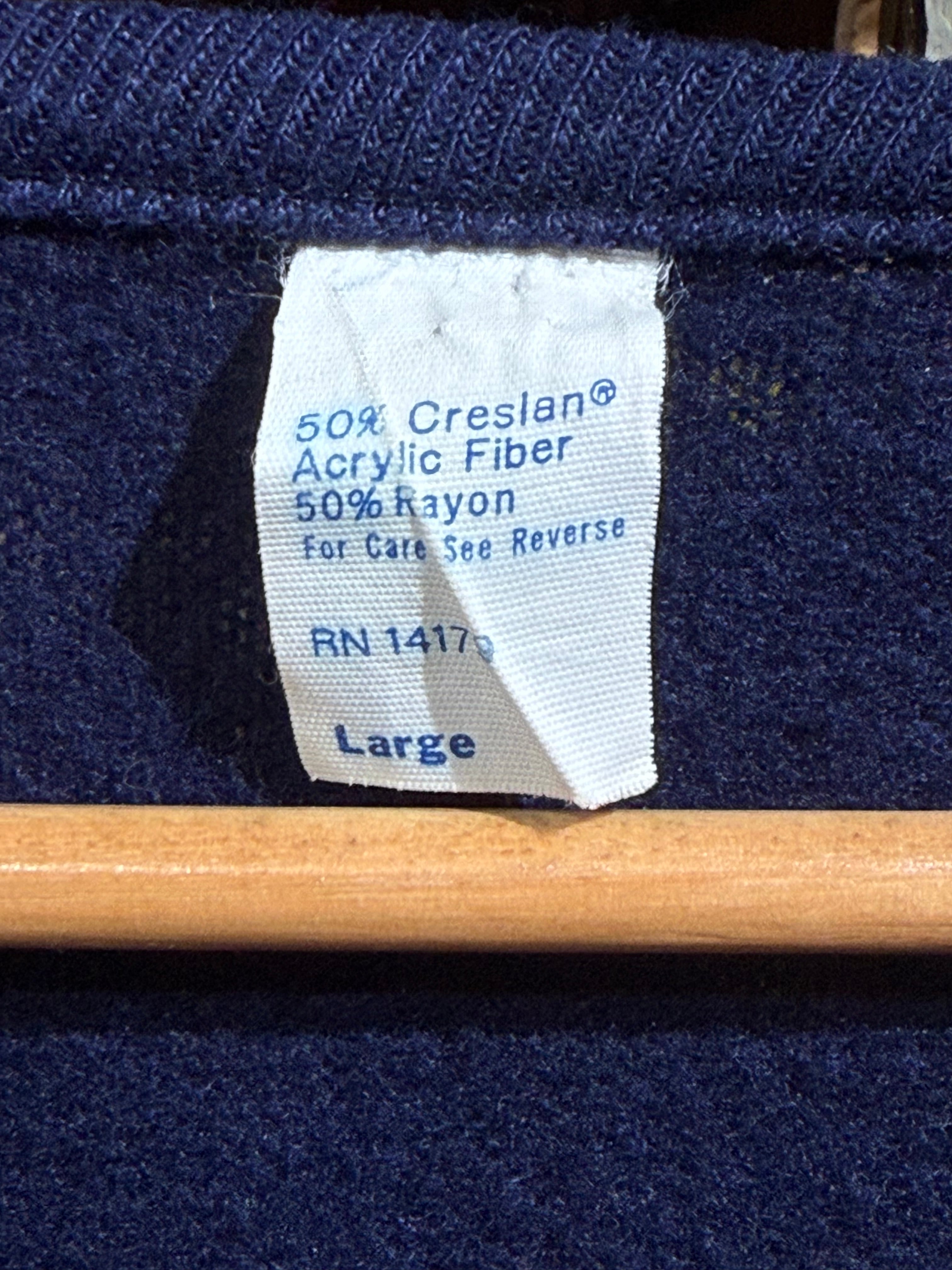 素材で50%を占めるCreslan(クレスラン)は、かつて60年代〜70年代に流行した合成繊維のアクリル素材のブランド名。