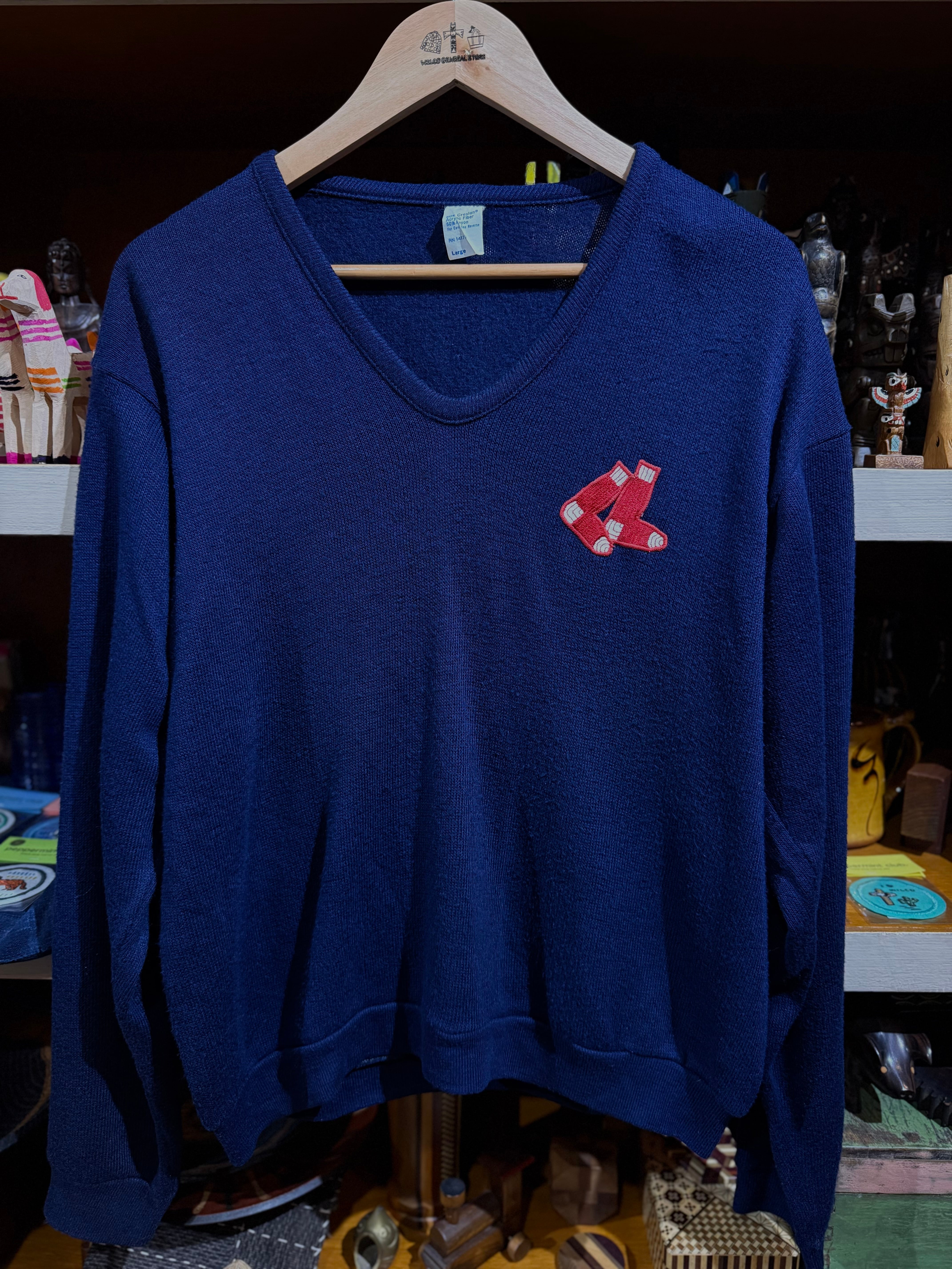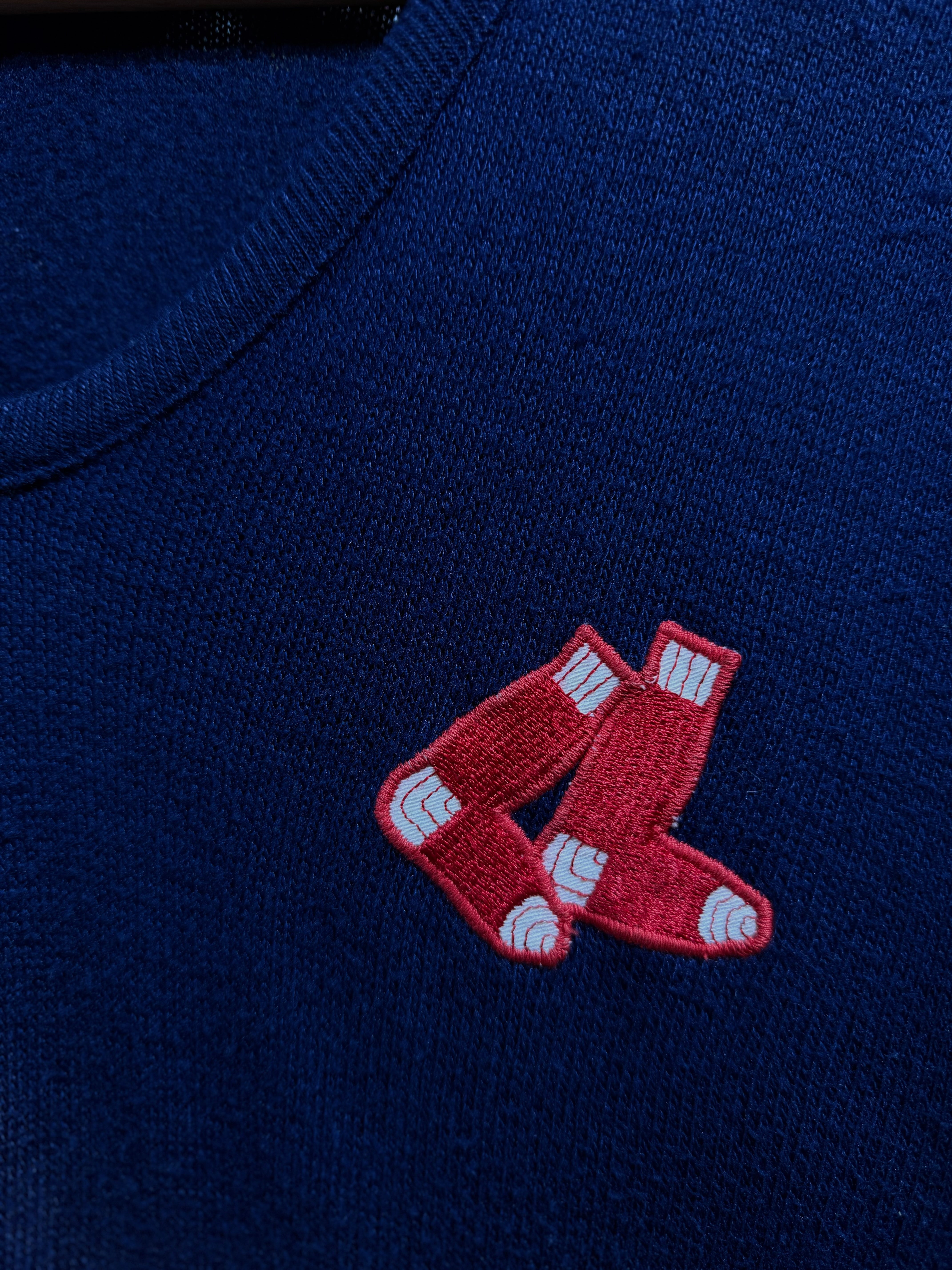 素材表記以外のタグがない為、詳細不明ですが、ネイビーベースに、赤いワッペンが映えます。