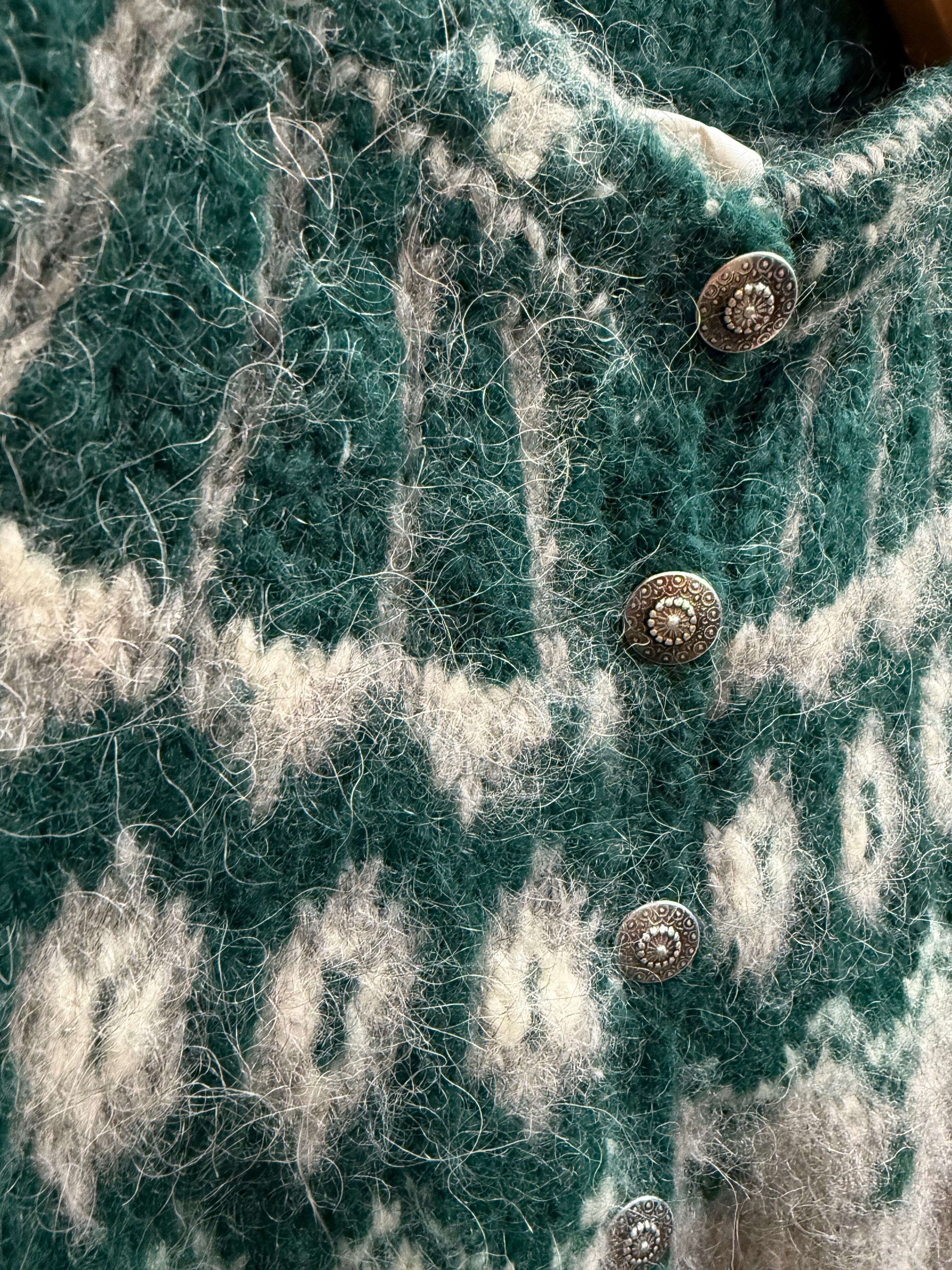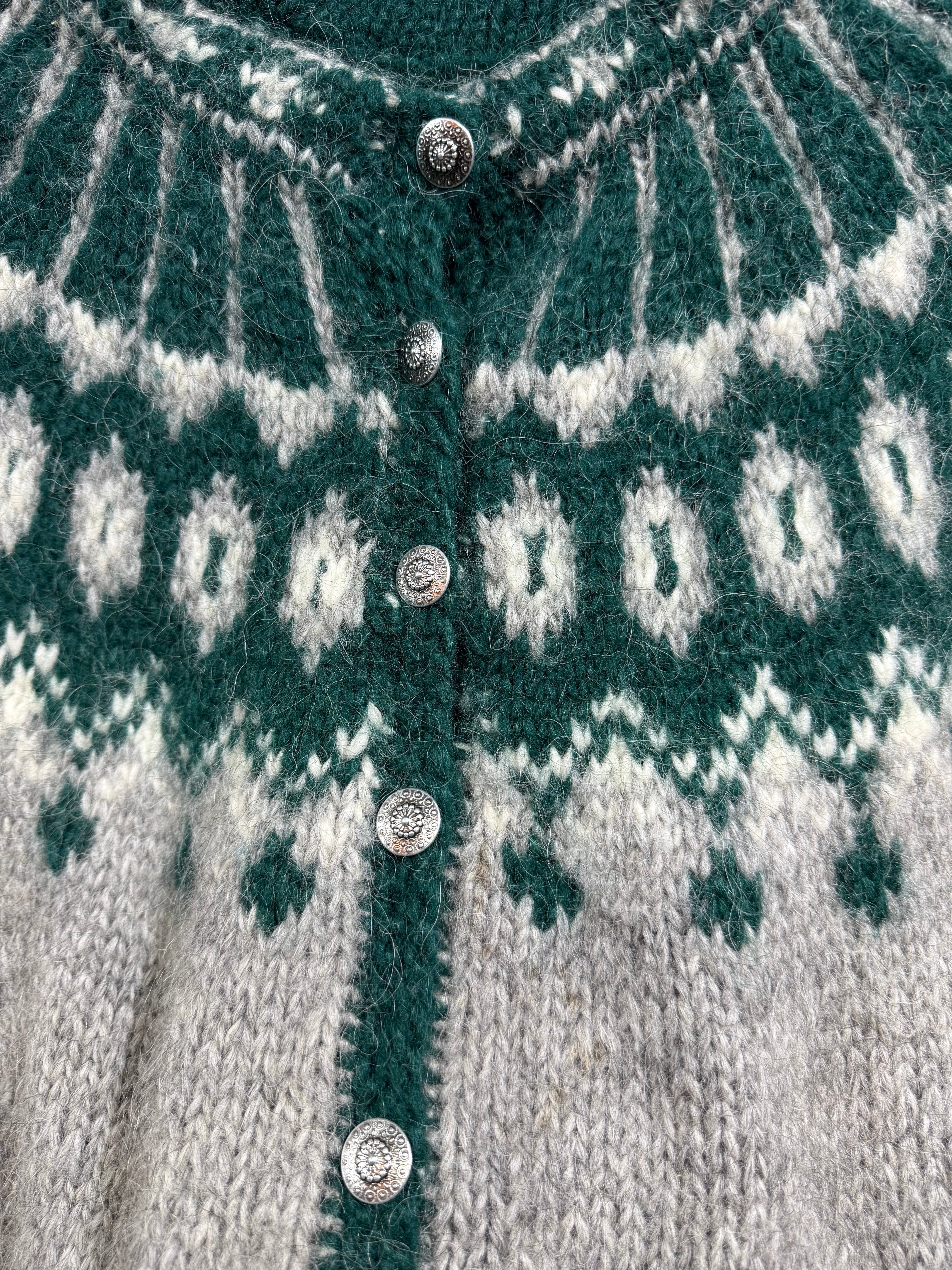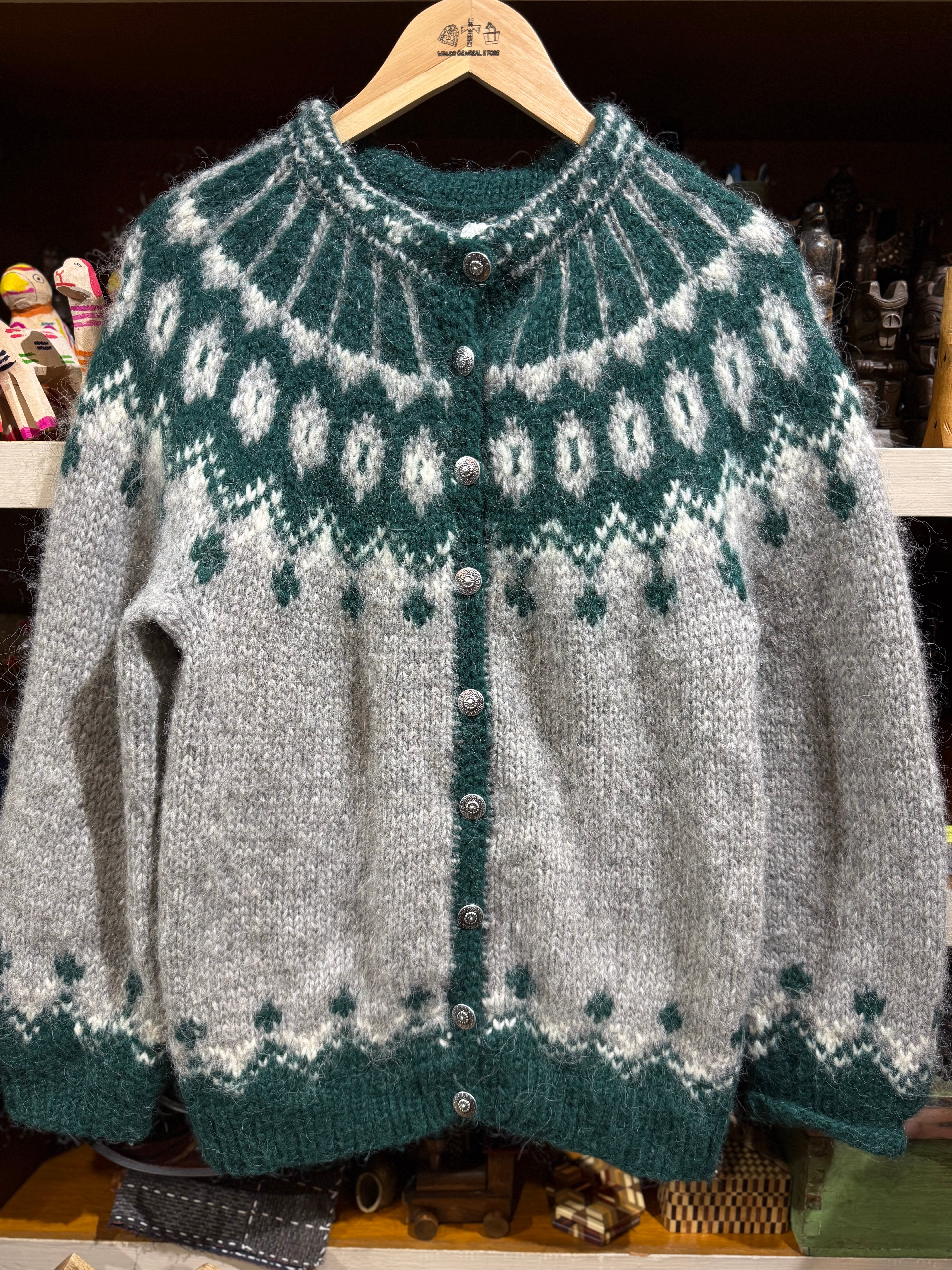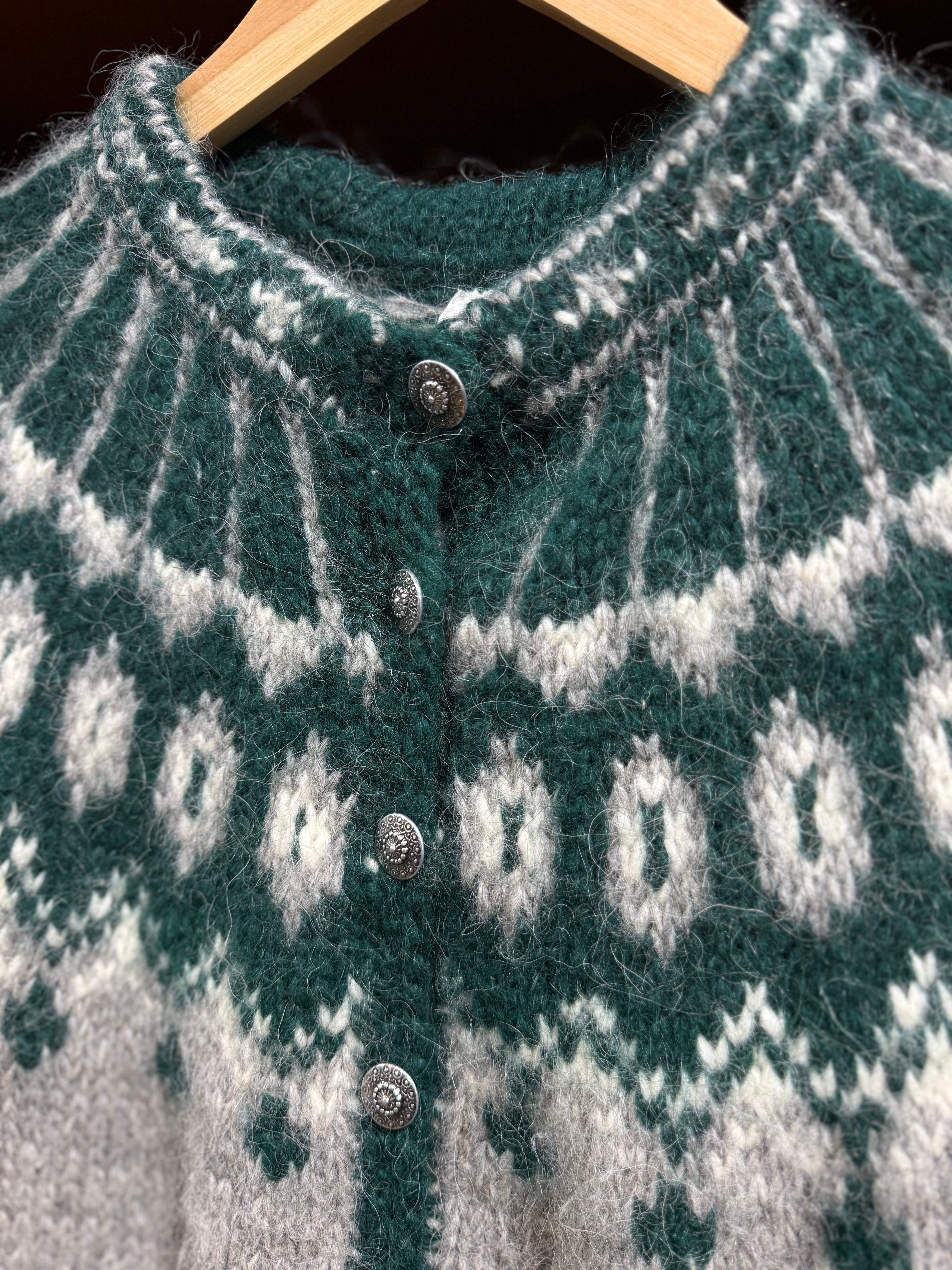 グリーン×ライトグレーのフェアアイル柄がグッドカラーリングでモダンな印象です。