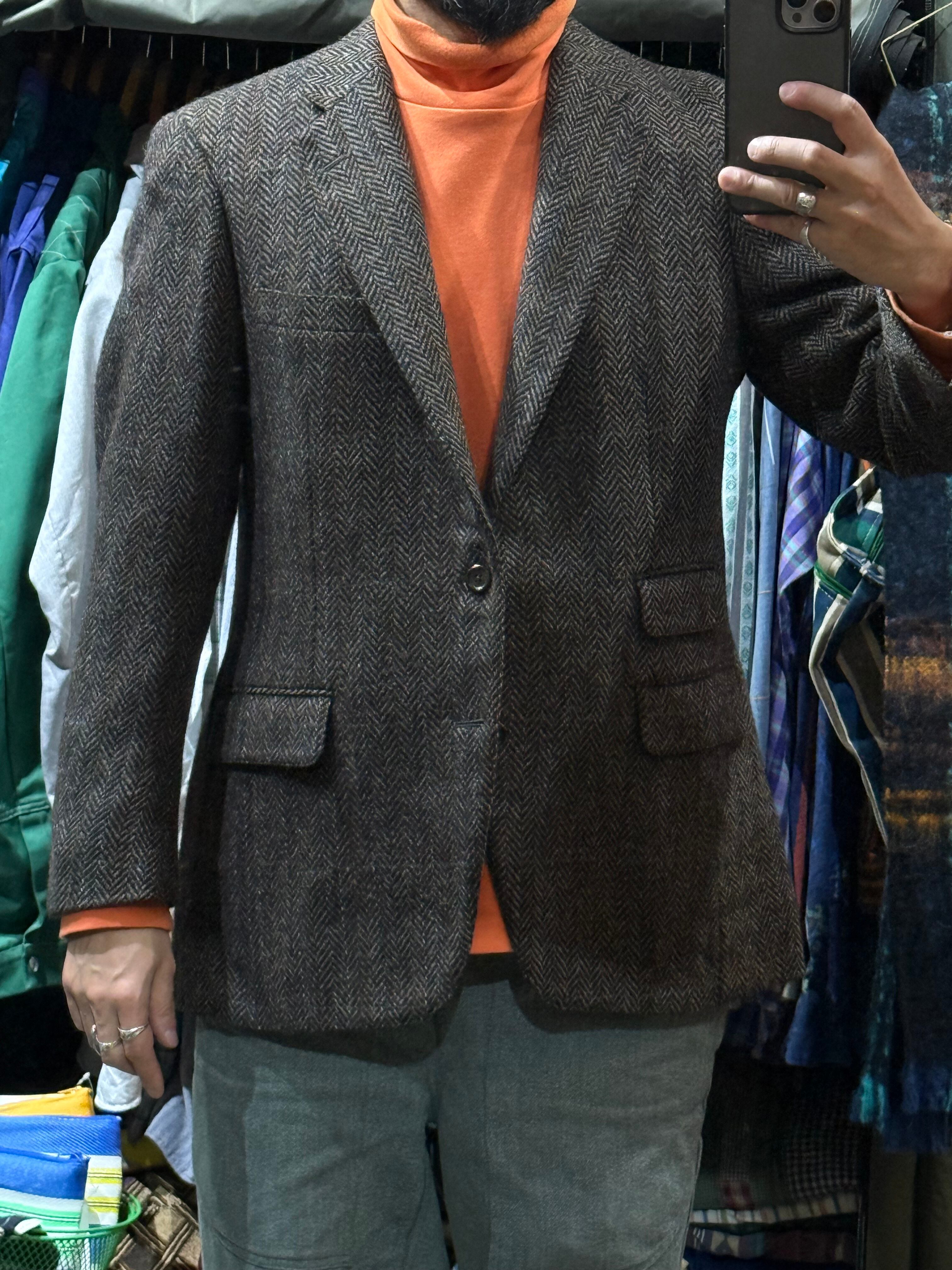 肩パッドはしっかりめですが、エリ幅やゴージ位置、全体のバランス感などはクセがなく着やすいOLDテイラードジャケットです。
