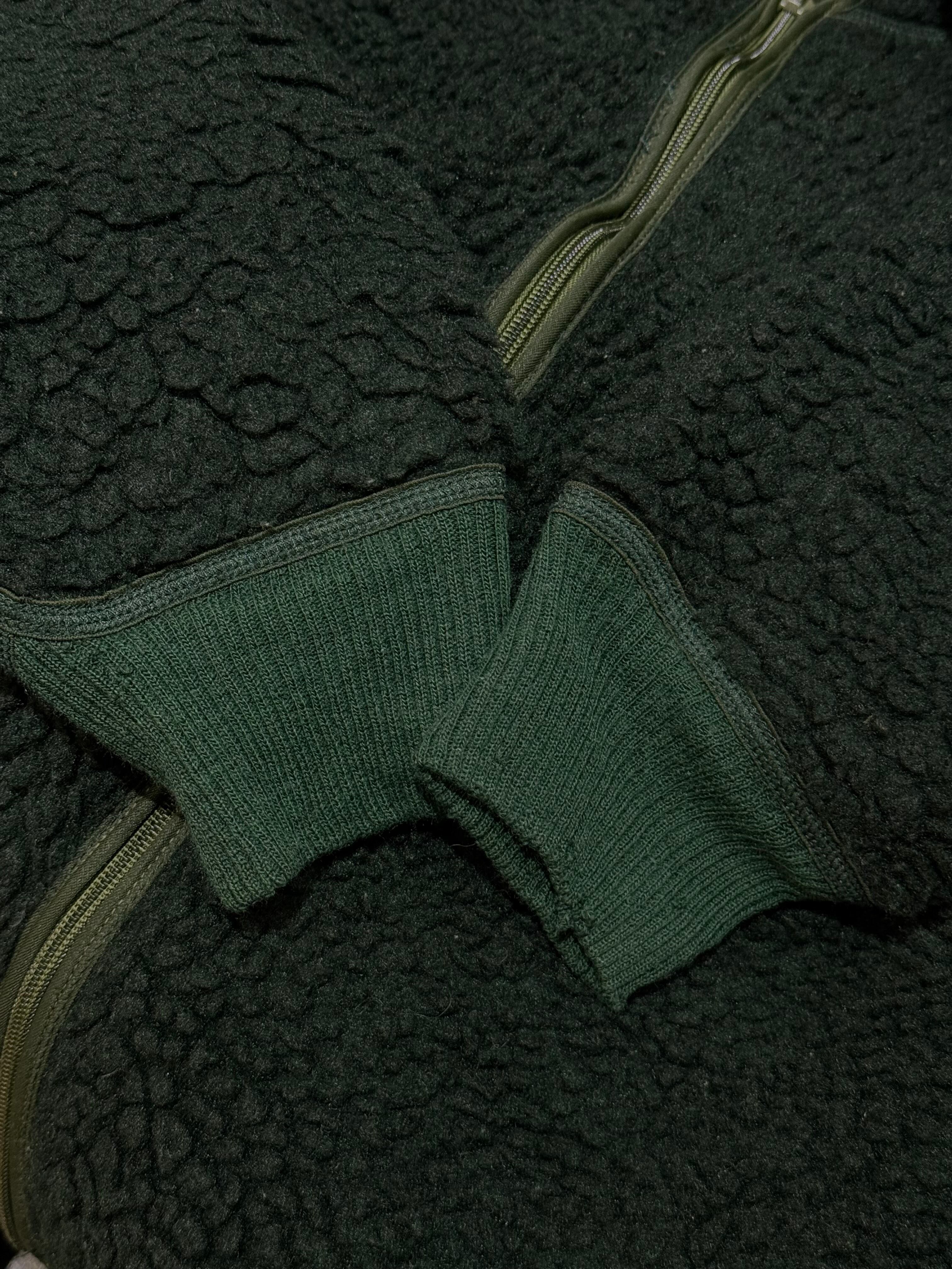 オリーブではない深みのあるグリーンと、ボアとシームのラインとのコントラストが良し