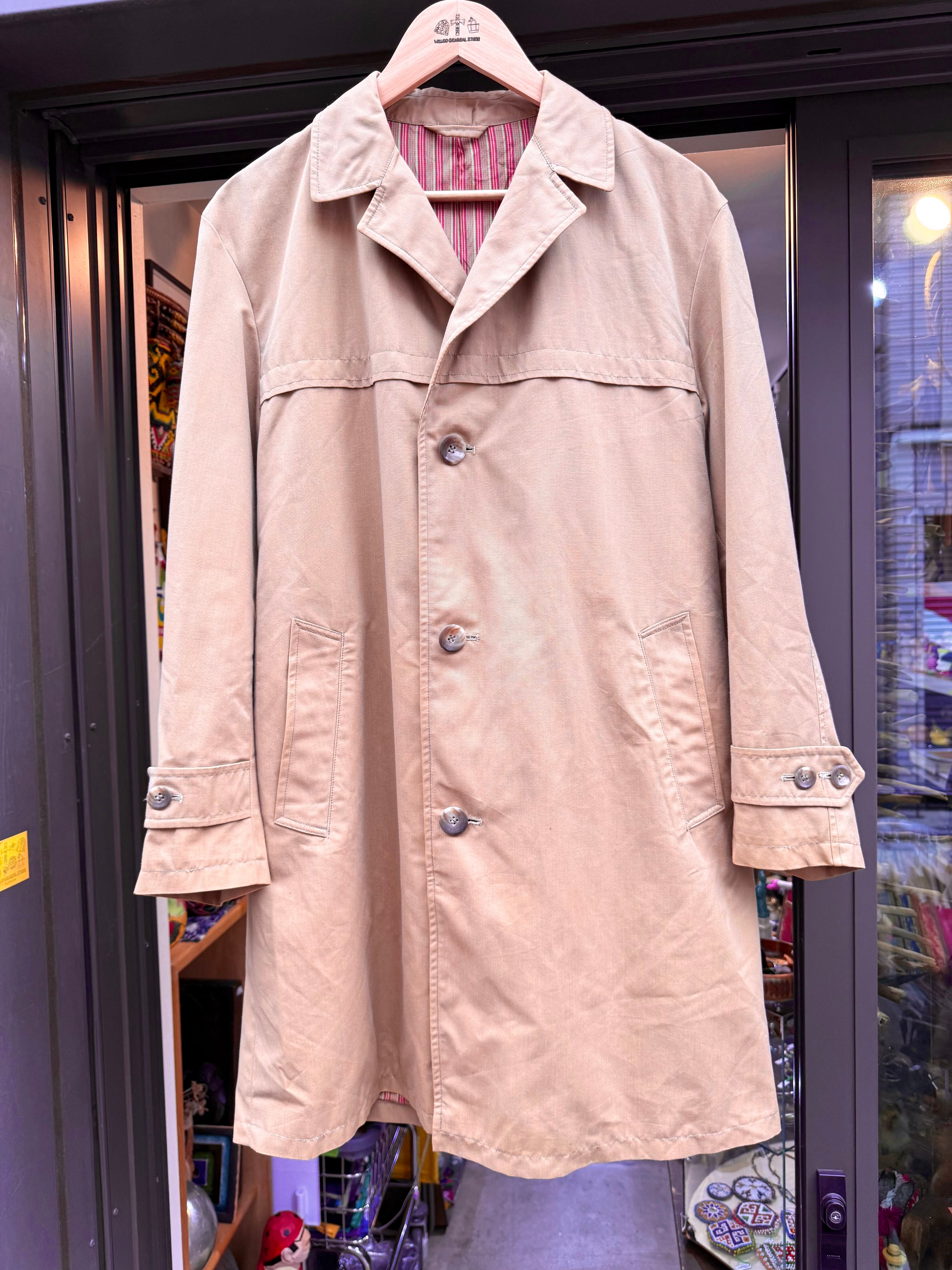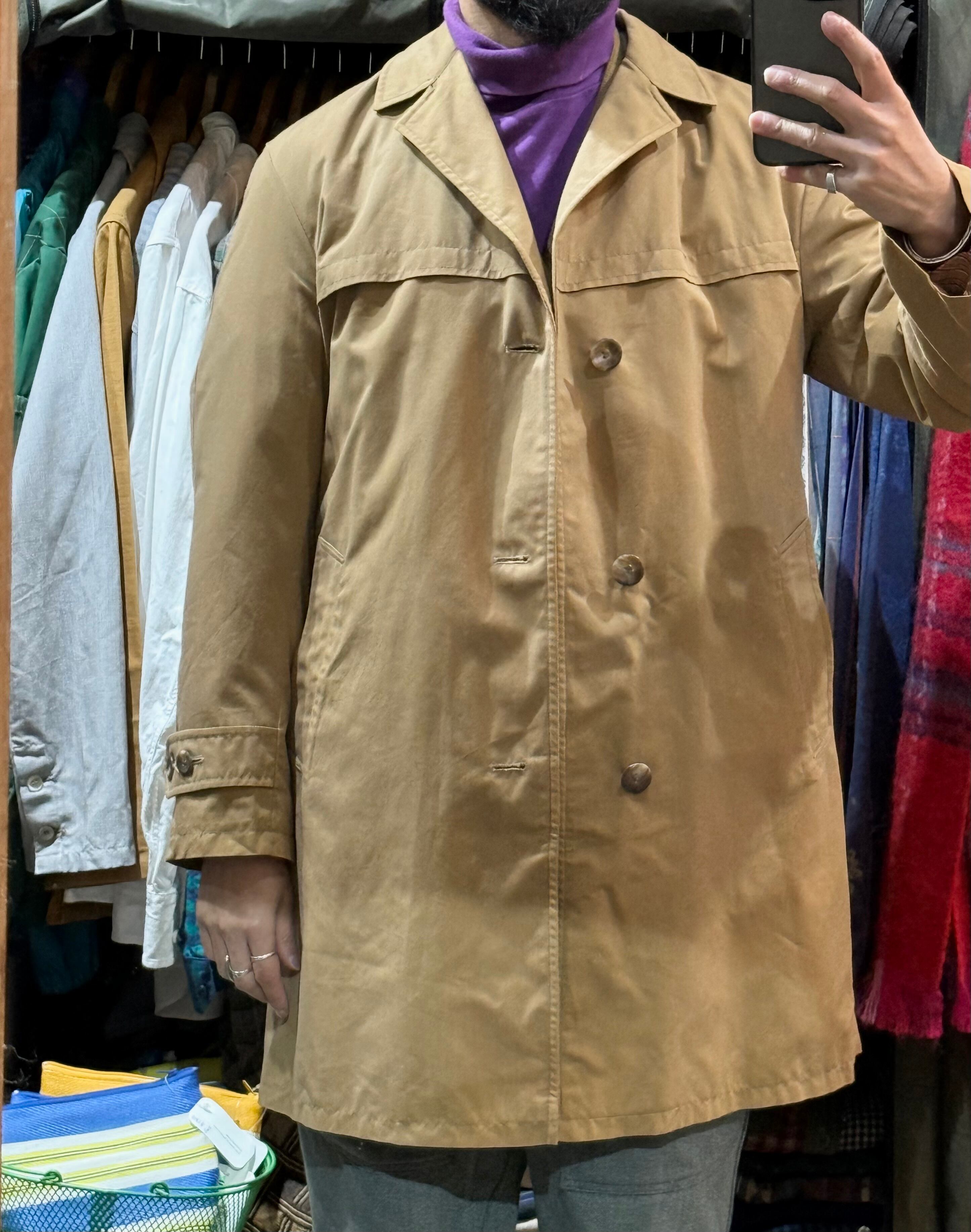 特に目立つ汚れやダメージは見当たらない、古着のベージュ系コートとしては良好な状態です。