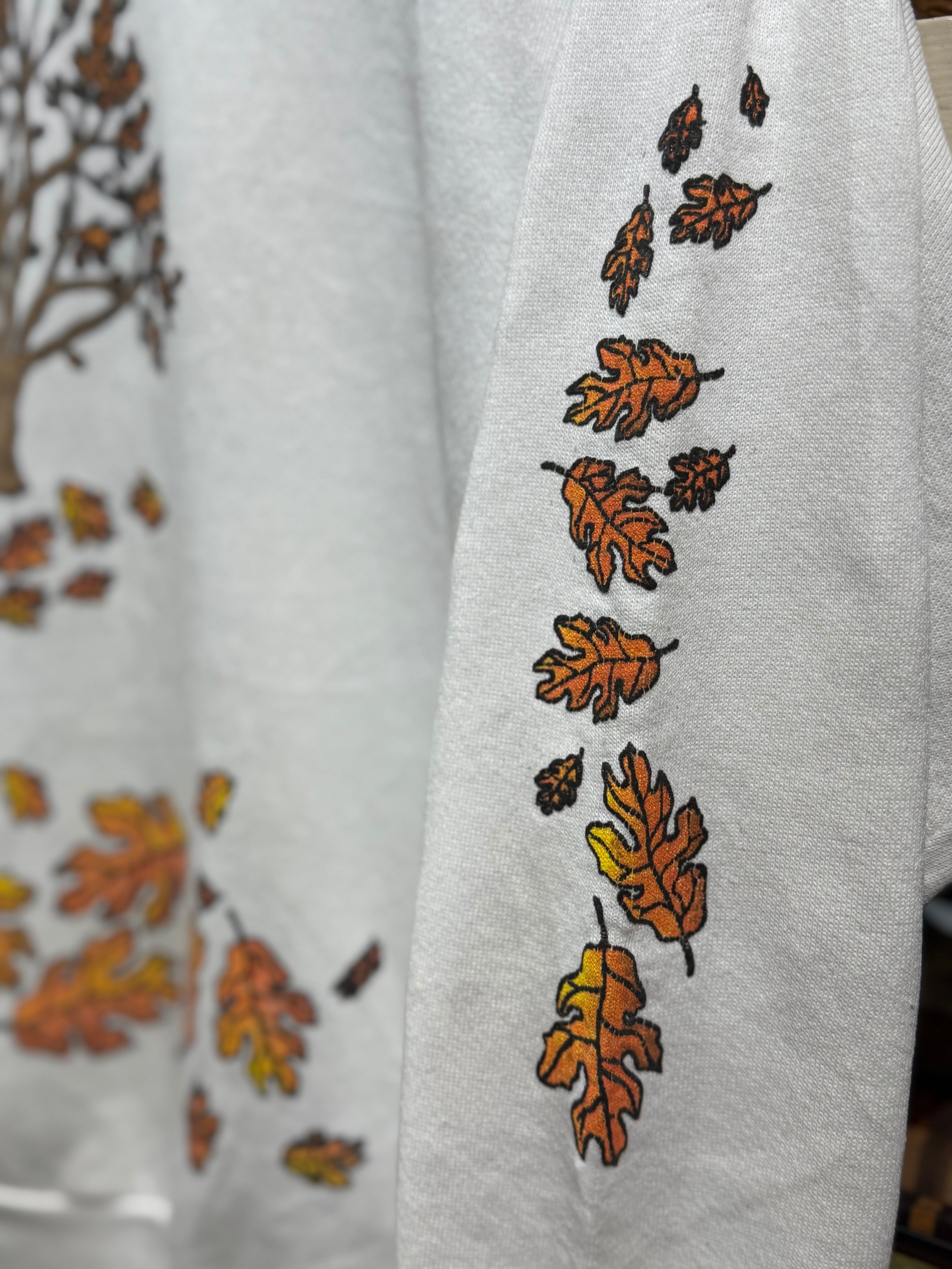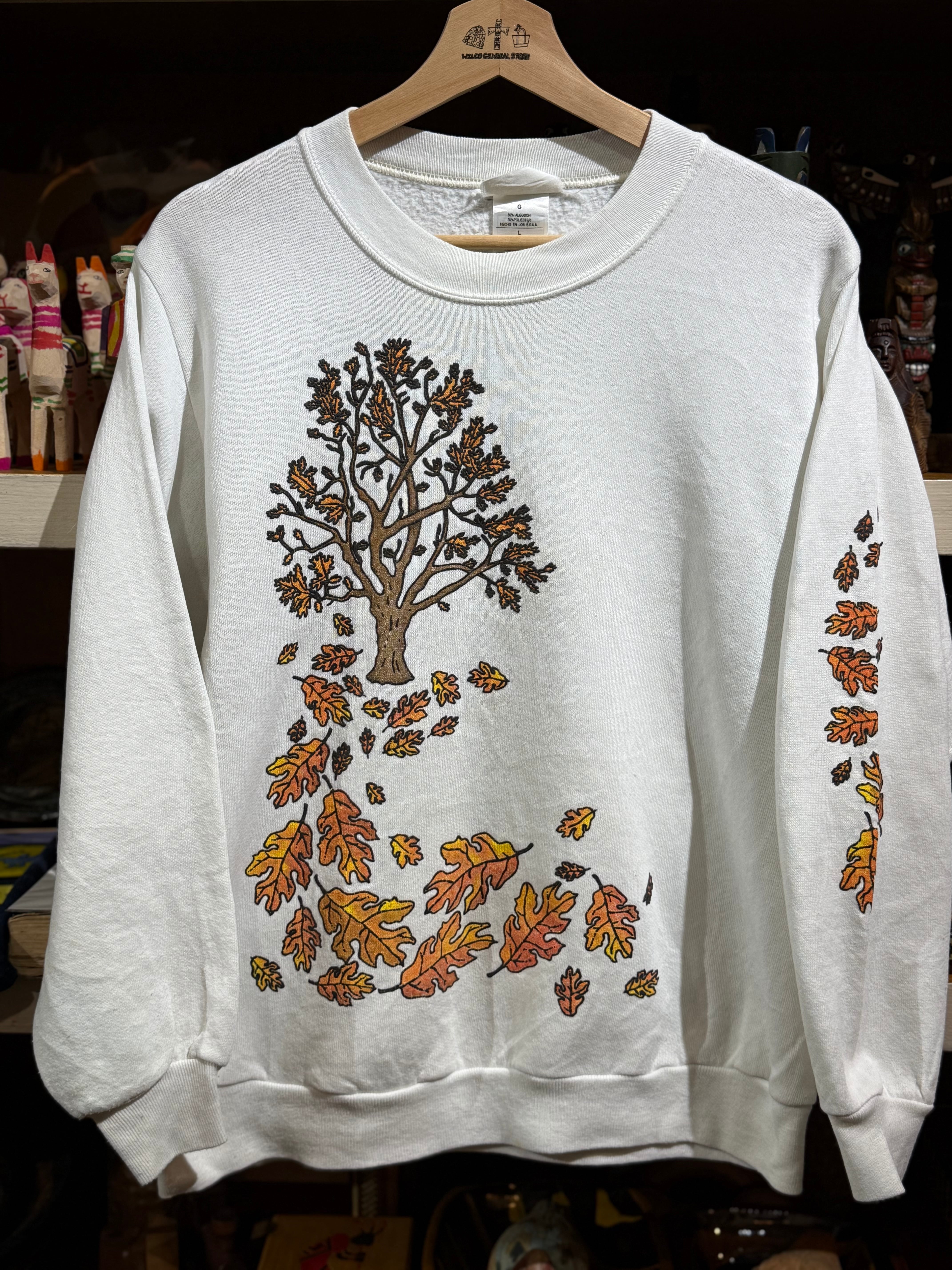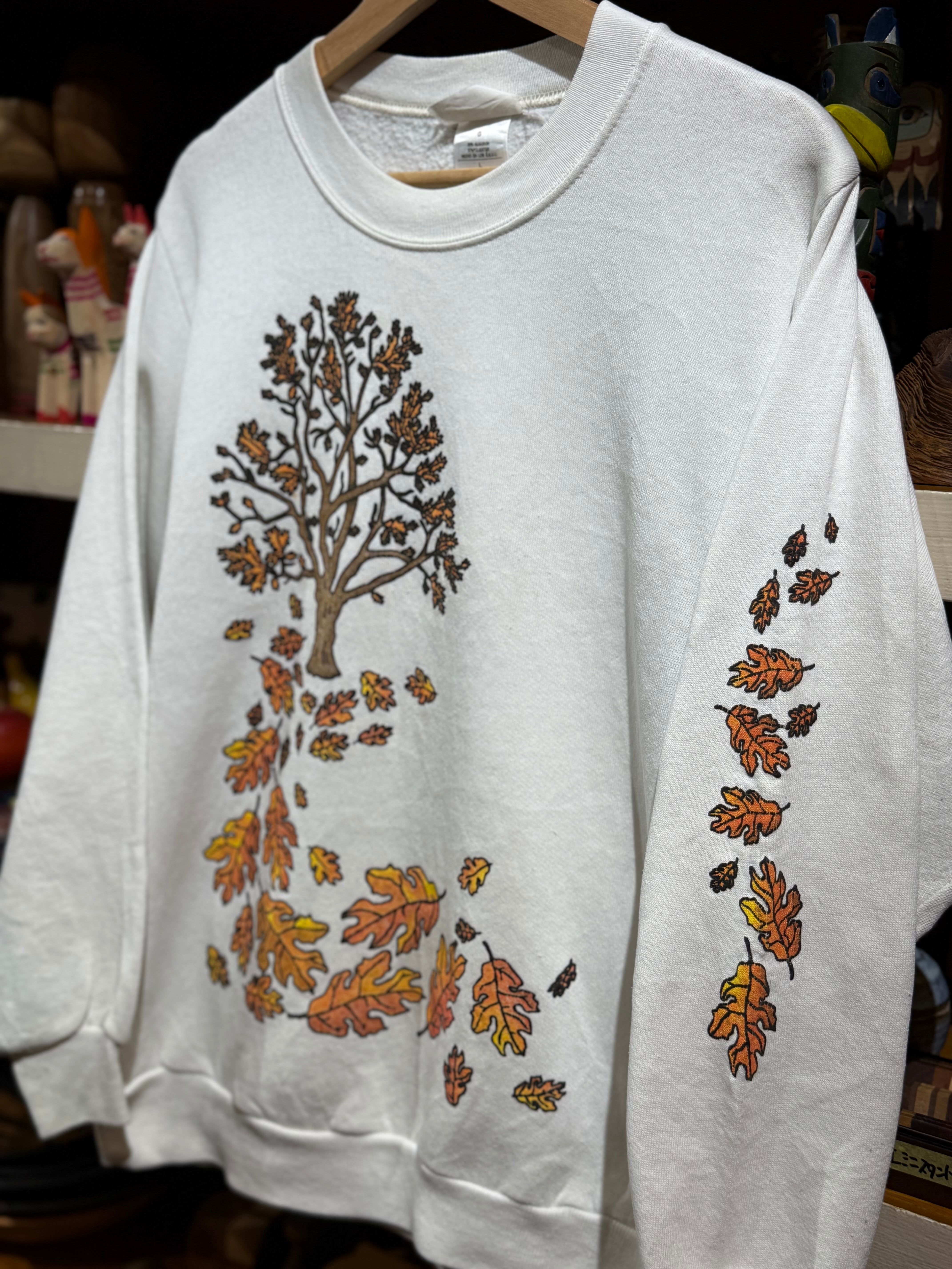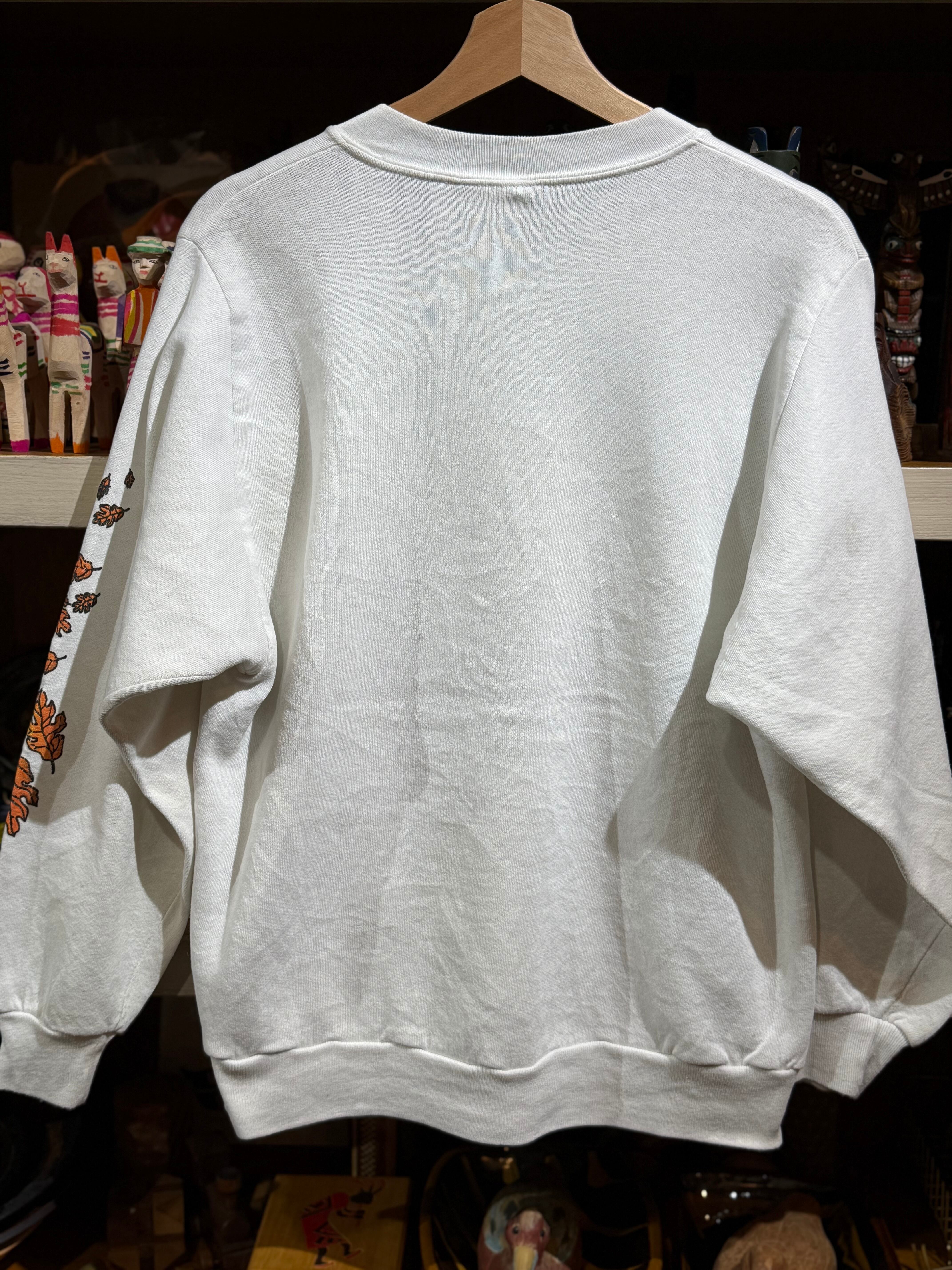 ホワイトボディの古着のTシャツやスエットは、良いデザインを見つけたと思ったら、致命的な汚れやダメージ、黄ばみがあることorサイズがバカデカイ…ことがほとんどなので仕入れは滅多にしないのですが…こちらは目立たないシミと、袖口にうっすらとシミ&毛羽立ち程度。