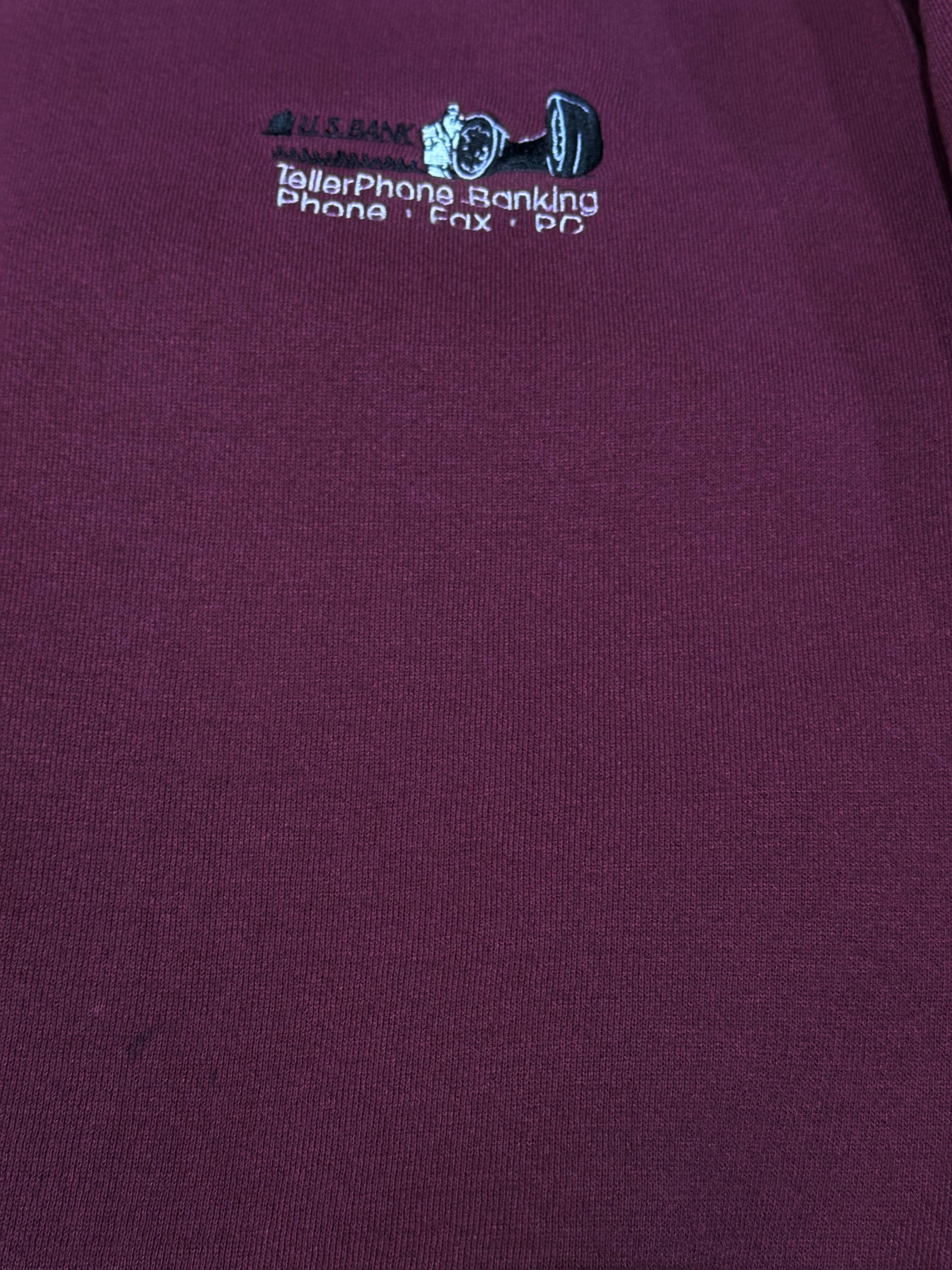 バーガンディボディに、US BANKの白黒の刺繍がアクセントのスエットです。
