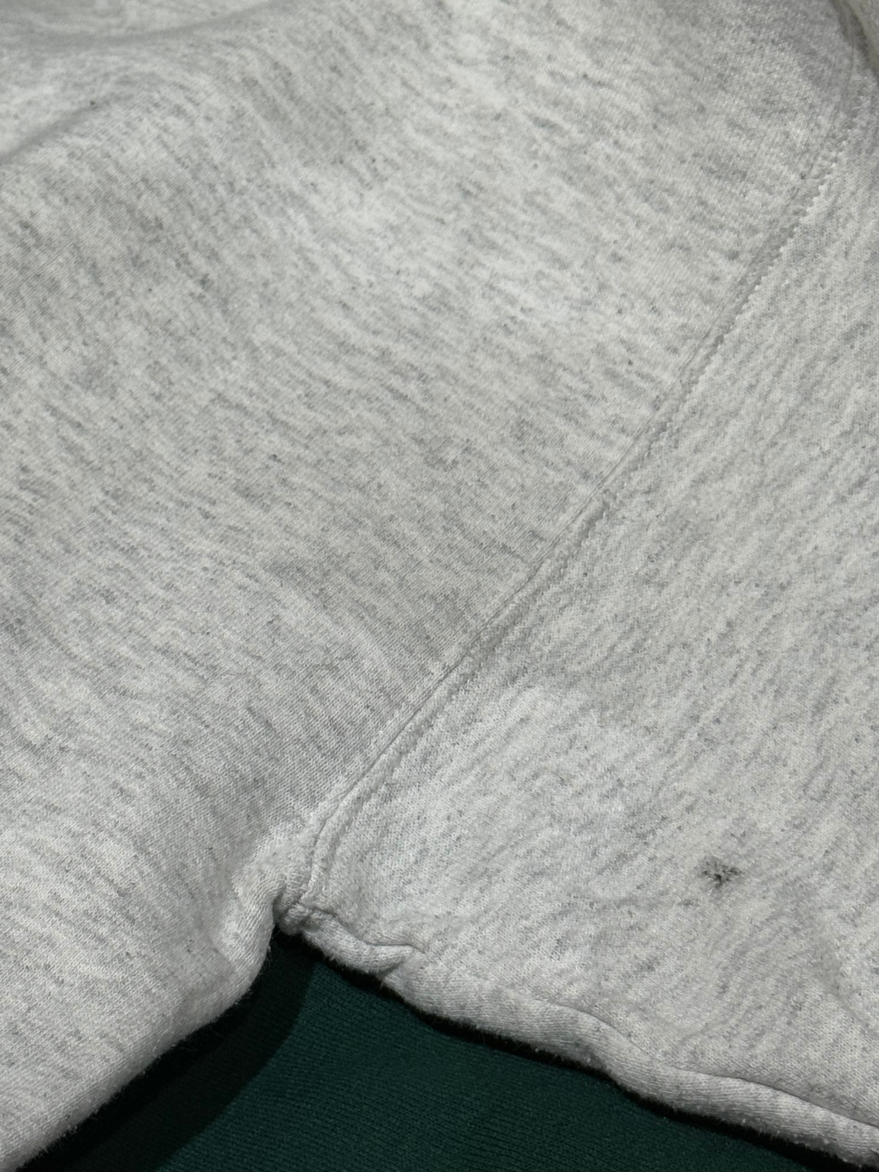 左袖のボディ近くに小さな黒い汚れ、ブルドッグプリントと裾のリブの間に極薄いシミのような箇所がありますが、あまり目立たないと思われます。