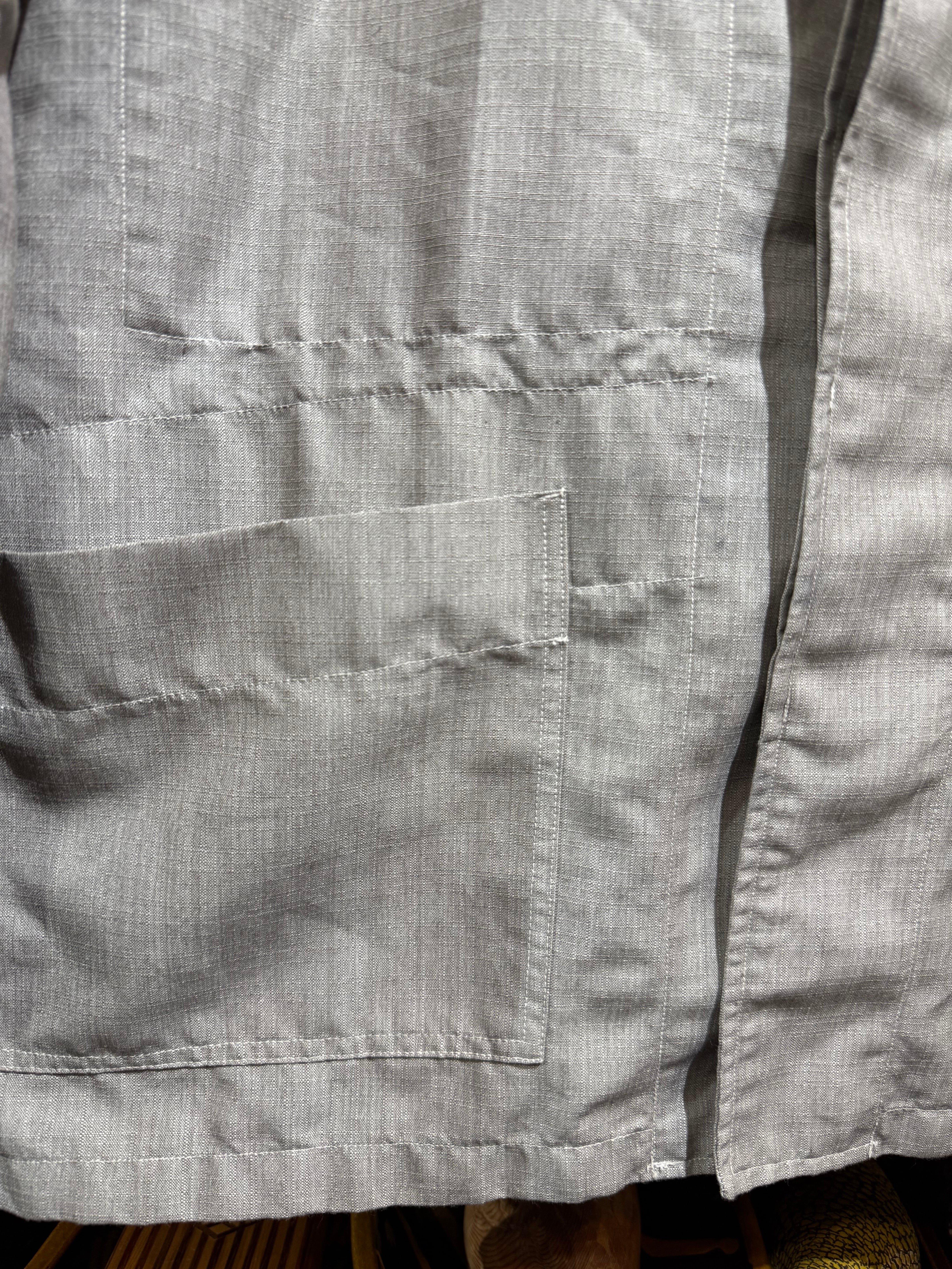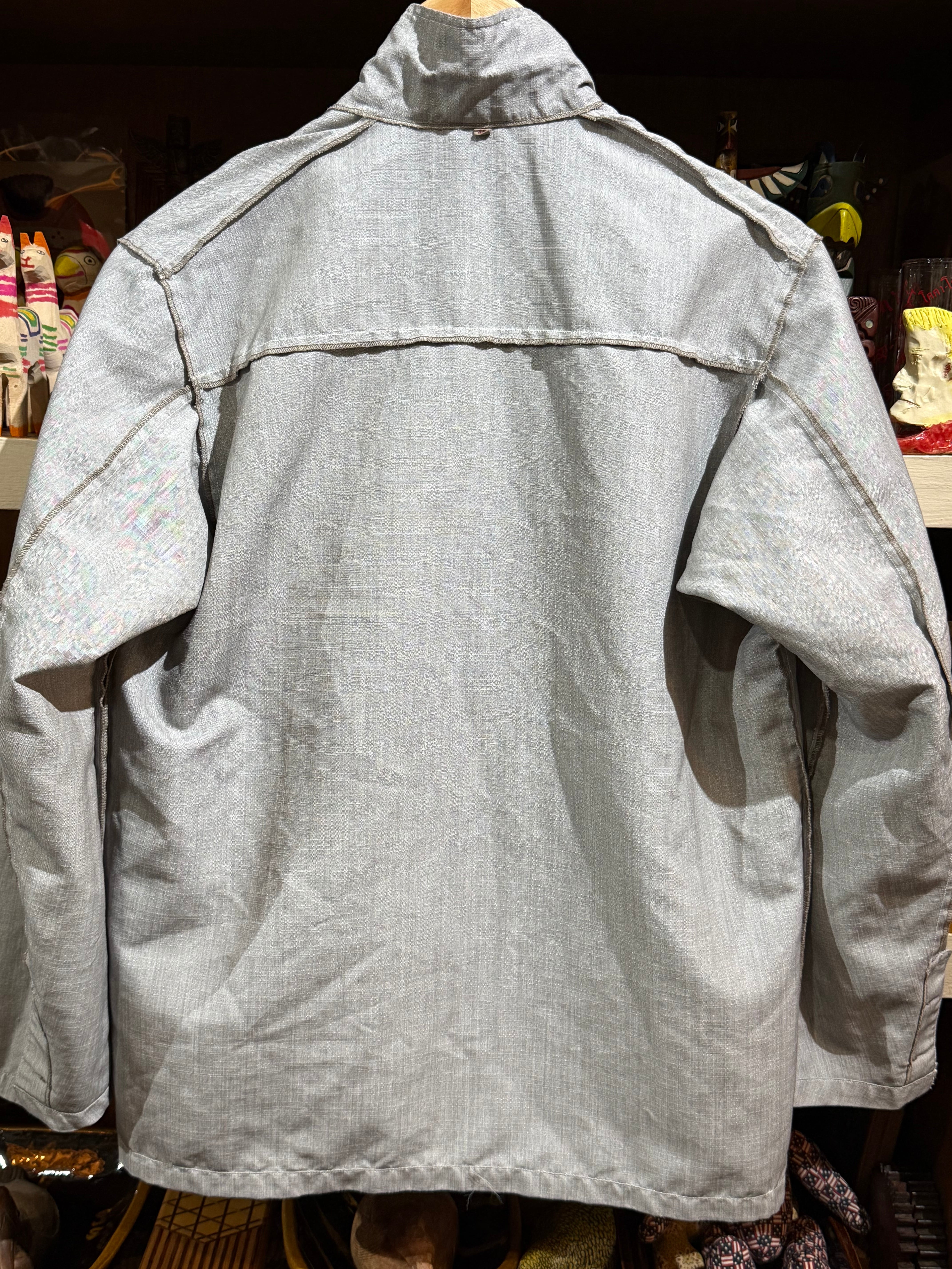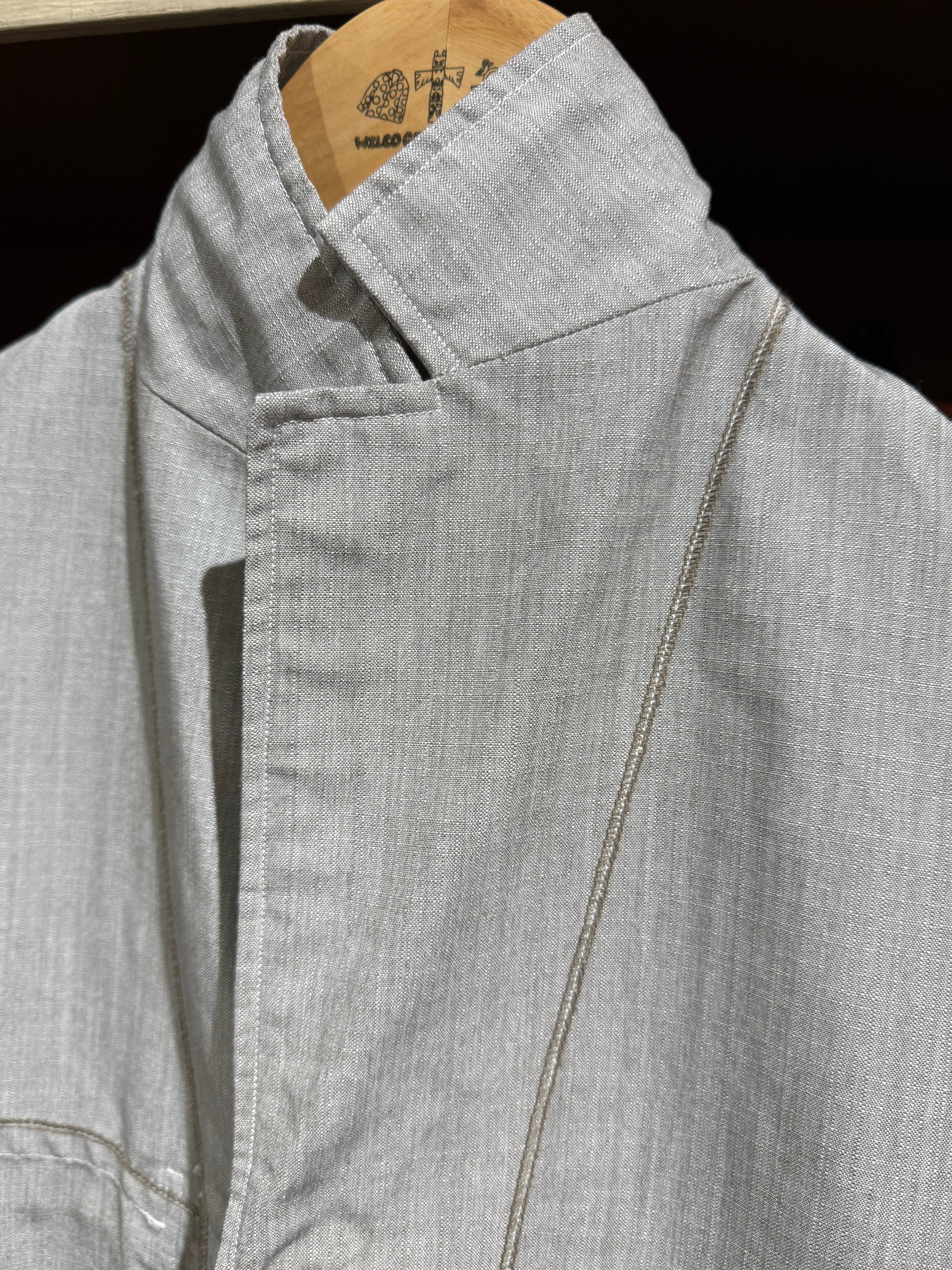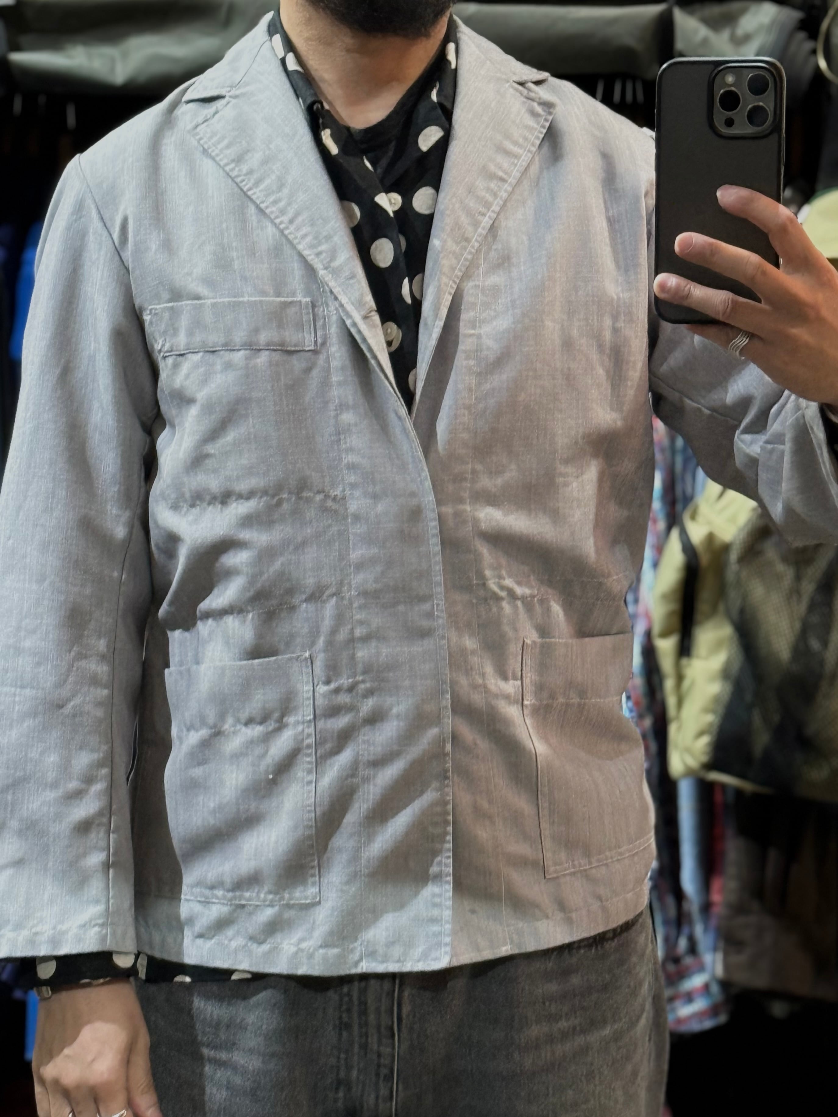 元々ホワイトorベージュ系だったジャケットを、ブラックorグレーorブラウン系で後染めして、結果的にこの色になっていますが、探してもなかなか見つけられないであろう絶妙な色合い。